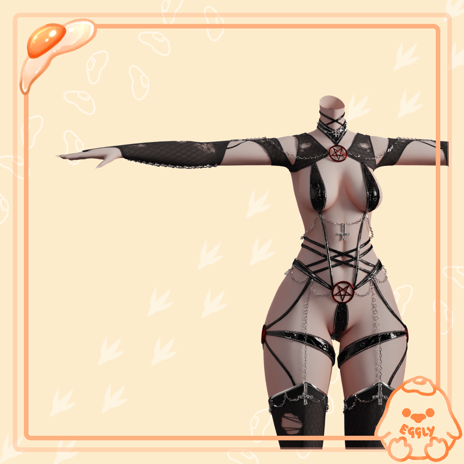 The outfit has alot of chains (lowest poly possible) if you want to lower the polycount easily jsut delete them as they still take on about half of the polys.