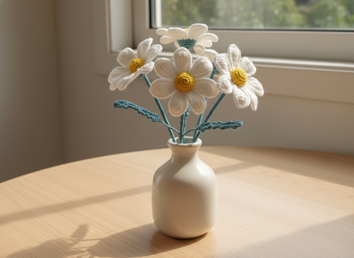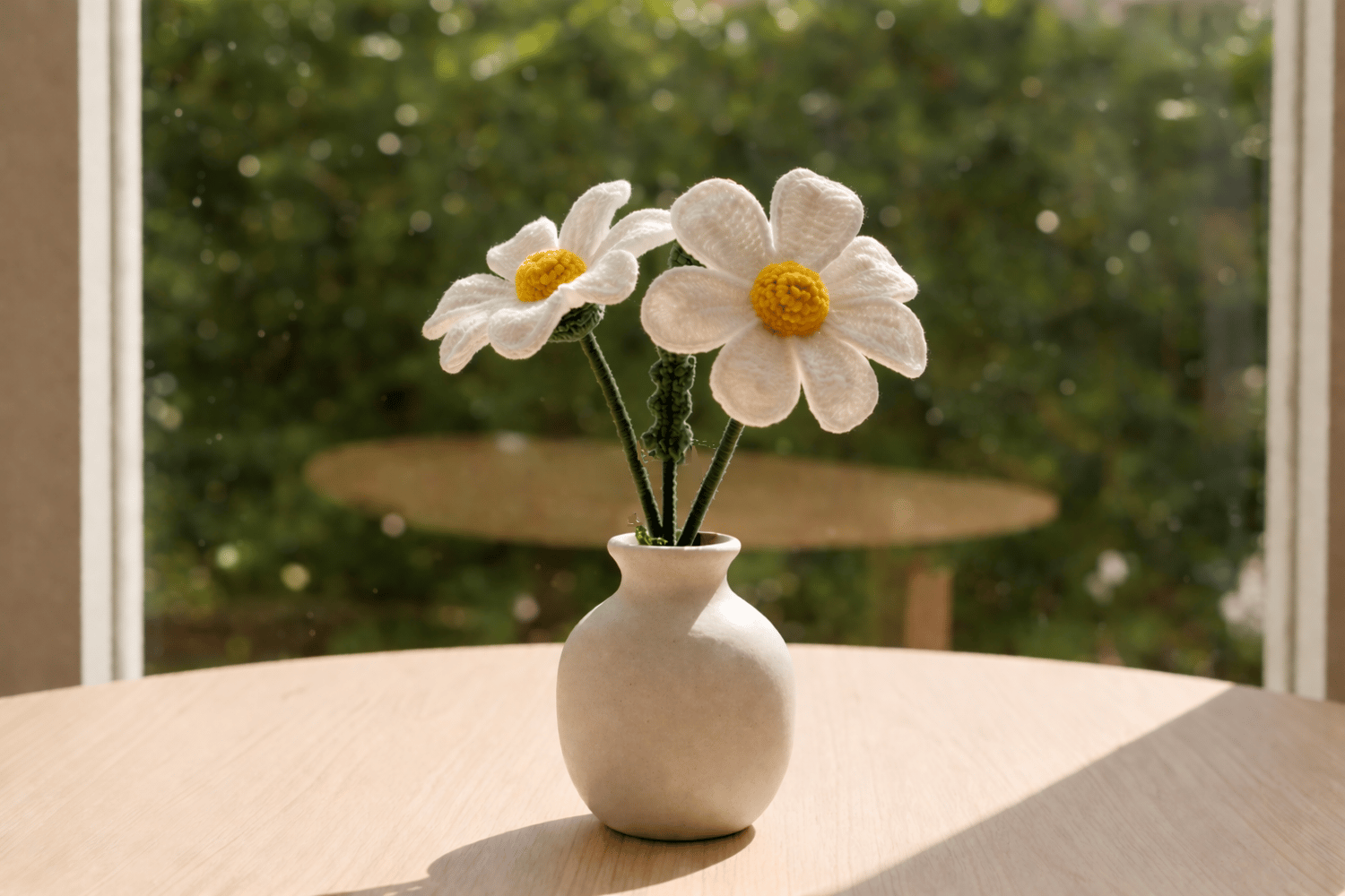 This cute crochet pattern is beginner friendly and designed for a clean, realistic minimal result. The slightly sculpted petals give it a big Blackfoot daisy look while keeping a soft, airy feel.