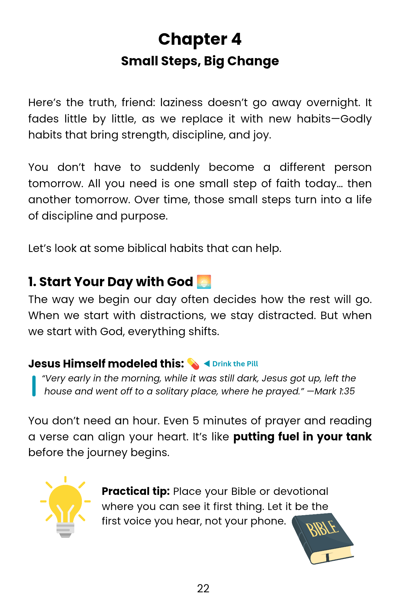 The Biblical Cure for Laziness is your step-by-step spiritual guide to break free from idleness and live a disciplined, Christ-centered life filled with purpose and diligence.