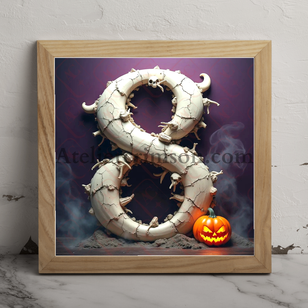 Number 8 spooky character skull Halloween Discover our Spooky Skull Alphabet! Each character is a 3D masterpiece of bone and shadow. Perfect for Halloween designs, gothic projects, or unique wall art. 💀✨ Click to download this high-resolution character and elevate your creations with haunting elegance!