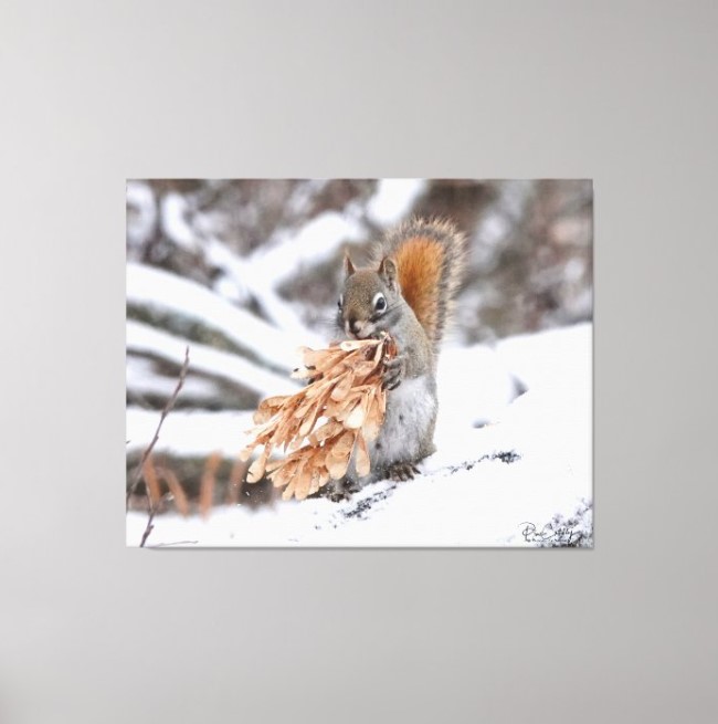 This is the one and only Mr. Bickles. He is an American Red Squirrel. I first started photographing him on a regular basis in 2020. Here he is enjoying a bunch of maple seeds. These are so much enjoyed by all the squirrels here.