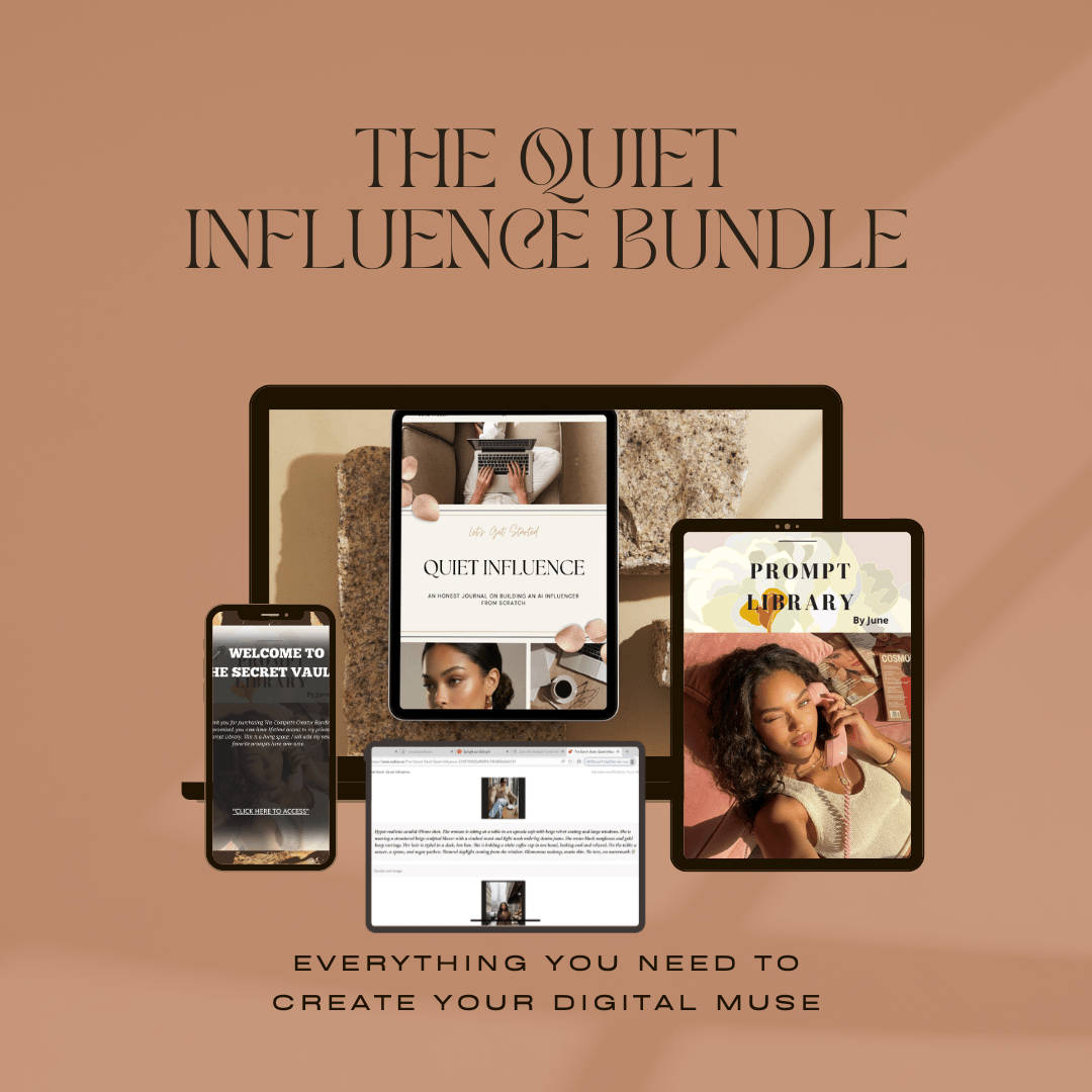 Quiet Influence is not a technical manual full of jargon. It is an honest, personal journal on how I built a consistent, aesthetic AI influencer using free tools and zero budget.