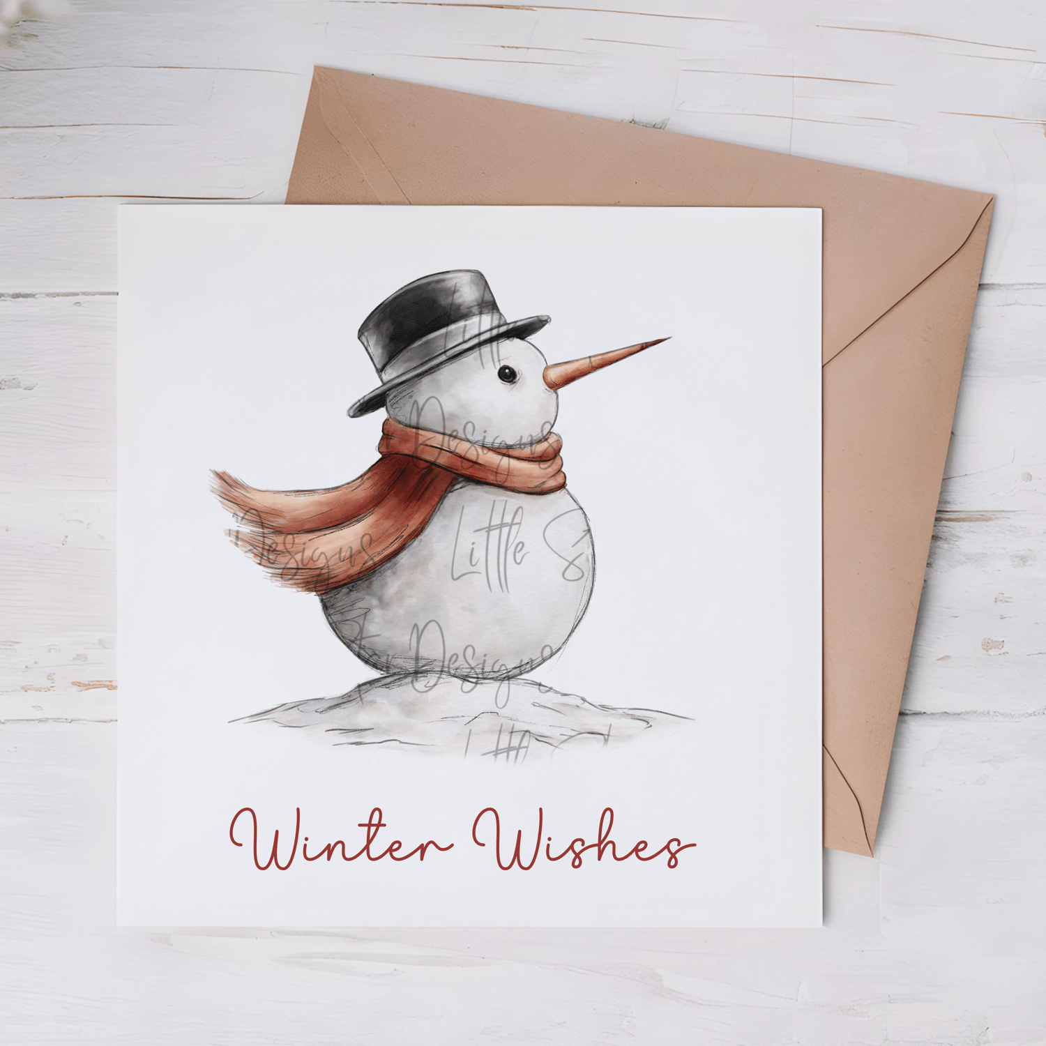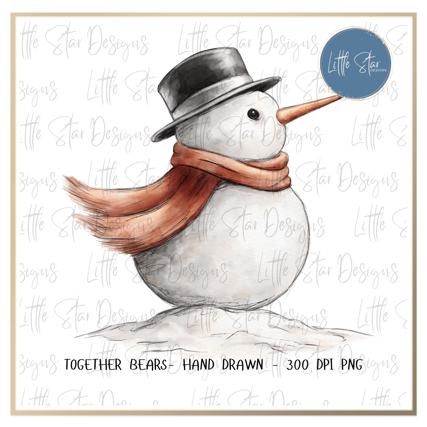 ⭐️ Inky Watercolour illustration featuring a snowman shaped like a Robin (1 PNG)