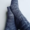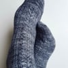 This pattern looks quite complex to start with but is actually a very simple 4 round repeat with just 2 cable crosses - ideal if you’d like to try cabling without a needle maybe? A variation on a seed stitch rib adds texture and interest to either side of the central cable panel and has the added advantage that it is super quick to work. These socks offer a fun and addictive knit and produce a great unisex result.