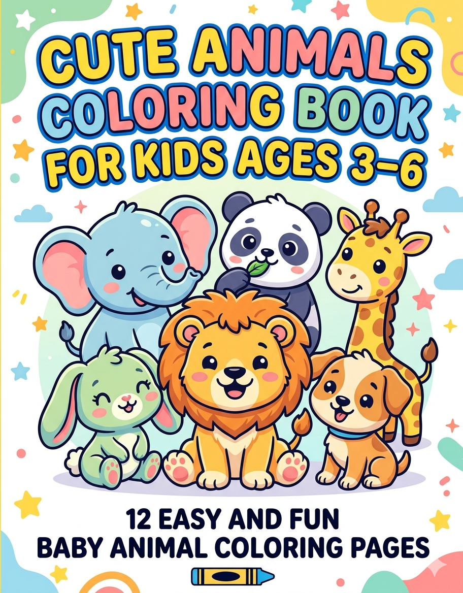This Cute Animals Coloring Book for Kids Ages 3–6 is designed especially for toddlers and preschoolers. Each page features a simple, adorable baby animal with bold, thick lines that are easy for little hands to color.