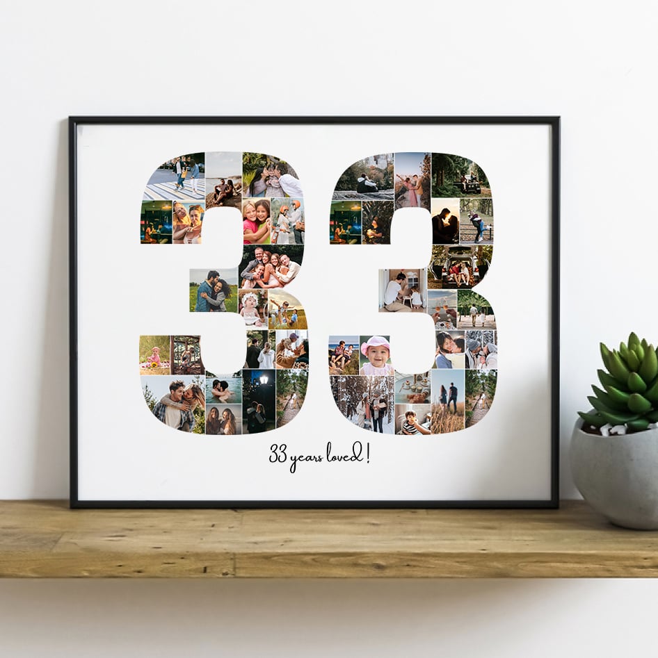 EDITABLE Custom 33rd anniversary Collage, 33rd birthday collage print, Photo Collage Gift, Number Collage, year collage, 33 birthday
