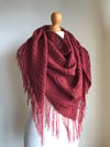 Simple stitches don’t have to create simple finishes! This reversible shawl creates an extremely elegant and wearable piece, with opulent textured motifs and (optional) fringed edging. Using only a few different stitch types (knit and purl, plus knit and purl increases) and with charts and full written instructions, this shawl showcases the wonderful textures and finishes you can create with knitting.