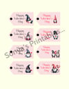 There are 8 Unique Valentine Black Gnome tags per page and you'll receive 2 PDF pages. You'll be able to print and reprint as many times as you like as long as you save your file after you download it. Save time and money by purchasing these today.