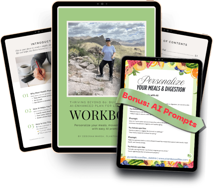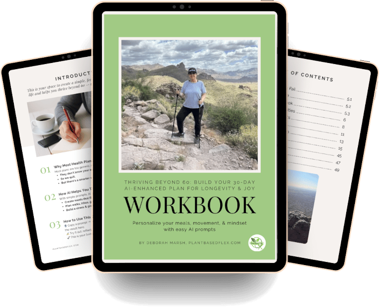 This bundle pairs my 30-Day AI-Enhanced Workbook with the Bonus AI Prompts so you can personalize meals, movement, hydration, and mindset in minutes.