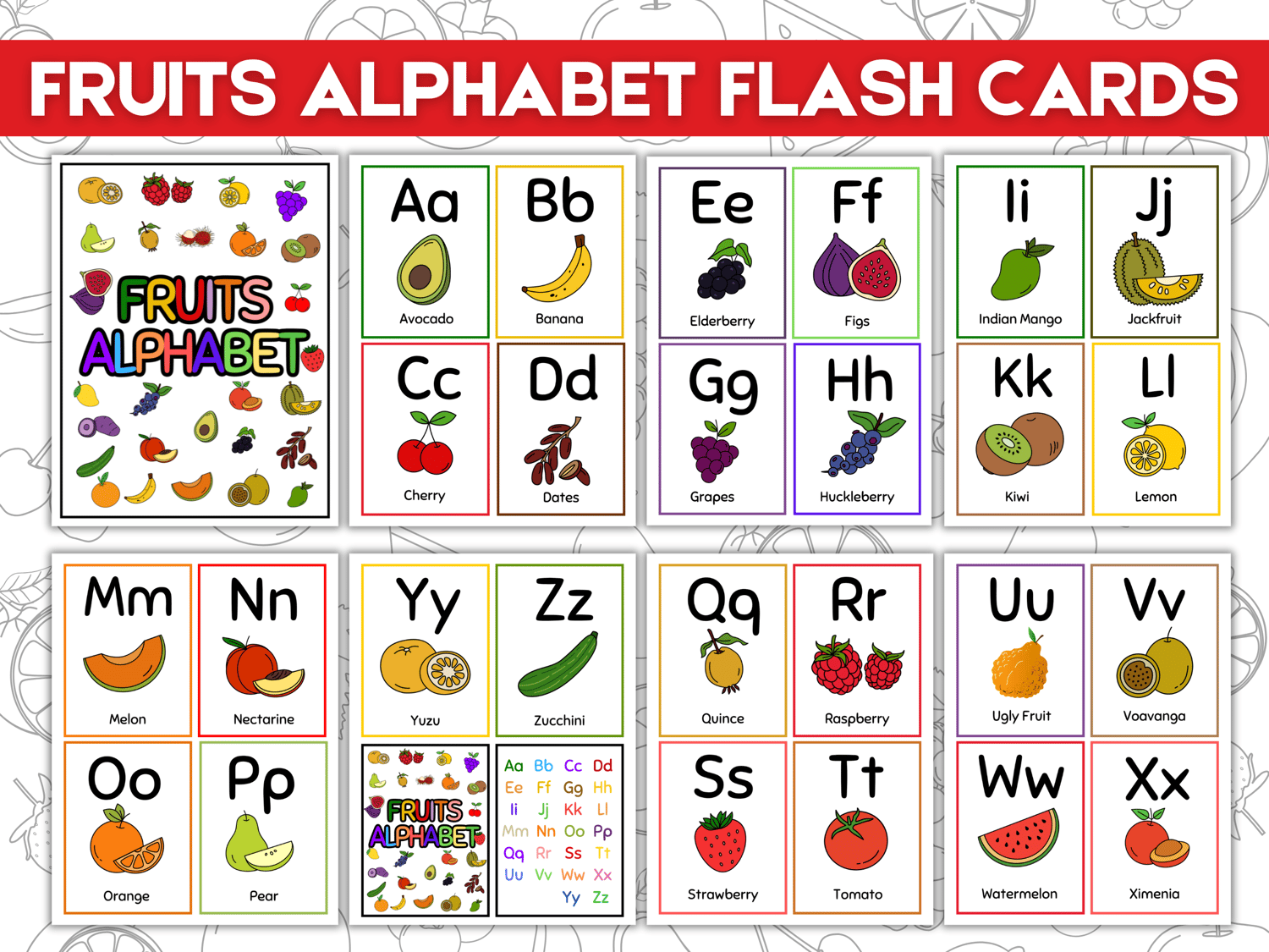 Fruits Alphabet Flash Cards - A to Z Learning Fun!