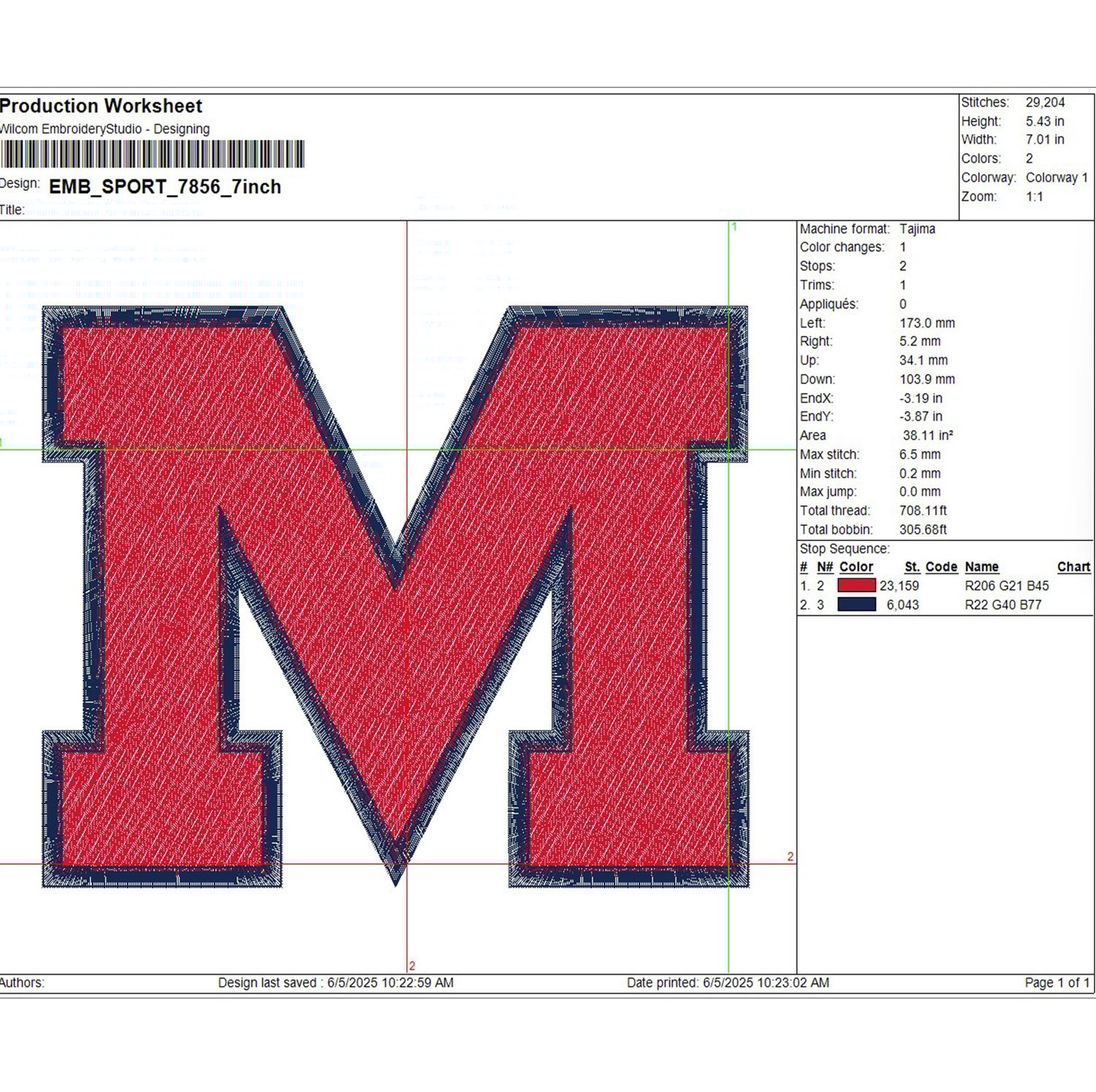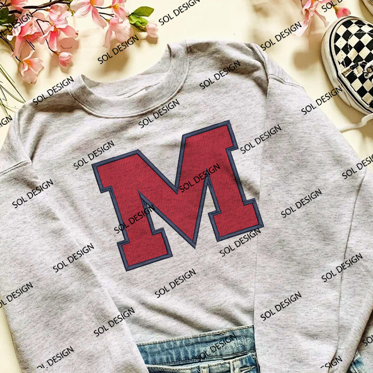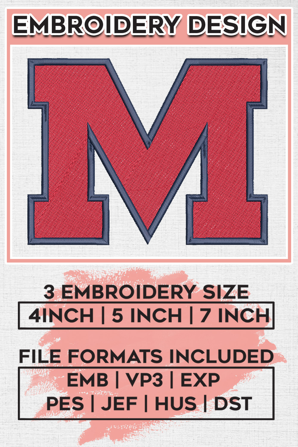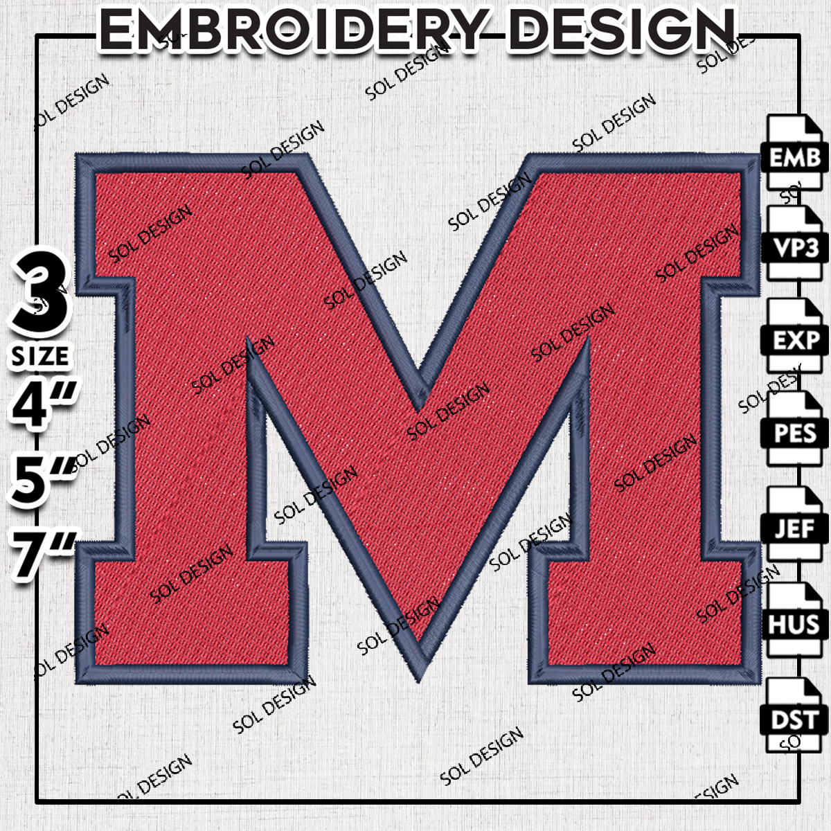 Ole Miss Rebels College Football Team M Letter Logo Embroidery Designs, NCAA Ole Miss Rebels Machine Embroidery Files, NCAA Logo embroidery designs, NCAA Ole Miss Logo, Digital Download