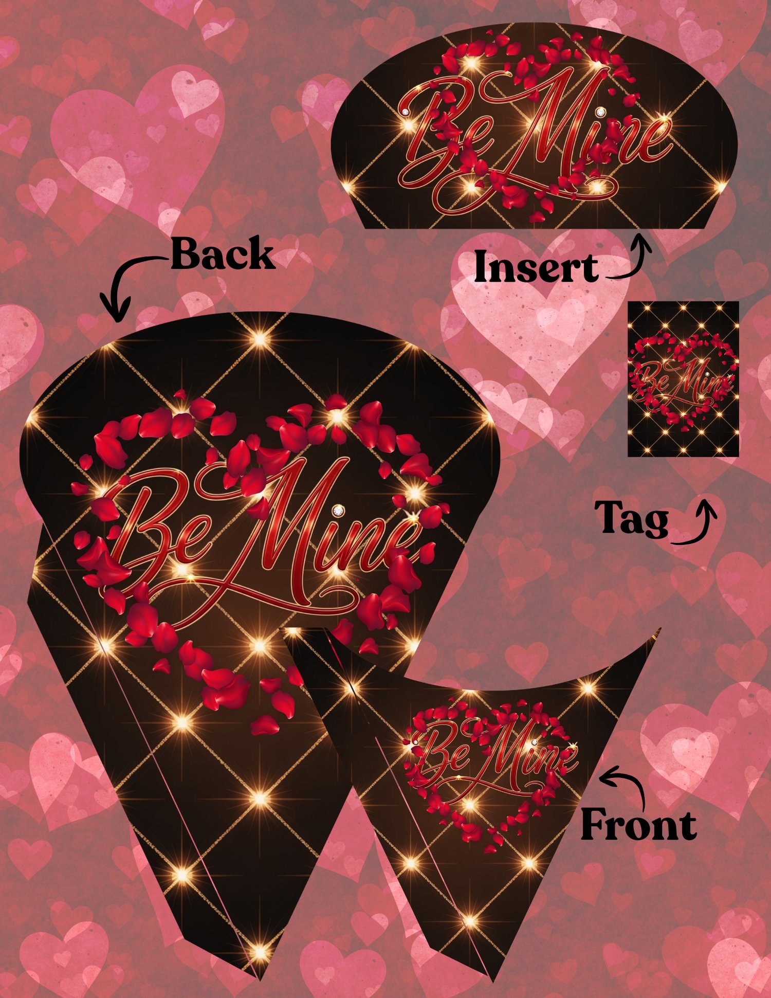 Perfect for Valentine’s Day gifting, this set allows you to create candy bouquets, self care bundles, or small gift arrangements using wraps, tissue paper, and a matching tag. The romantic mix of roses, lace, leopard accents, and rich Valentine tones makes this bundle ideal for adult gifting, boutique orders, and premium Valentine collections.