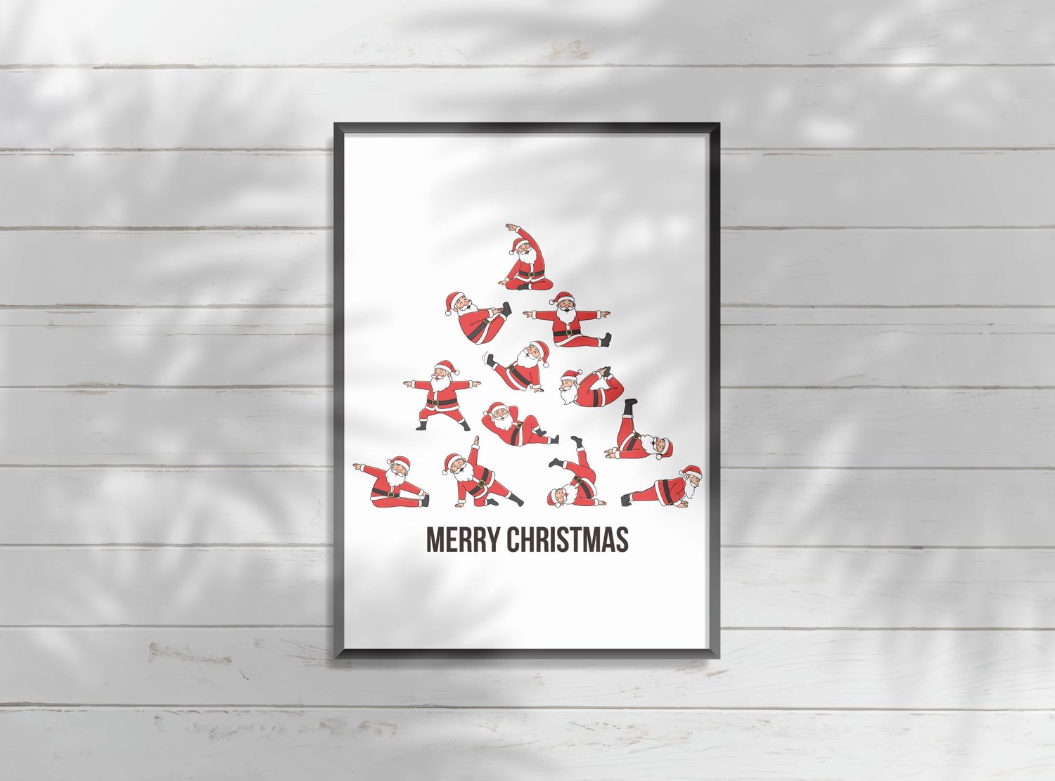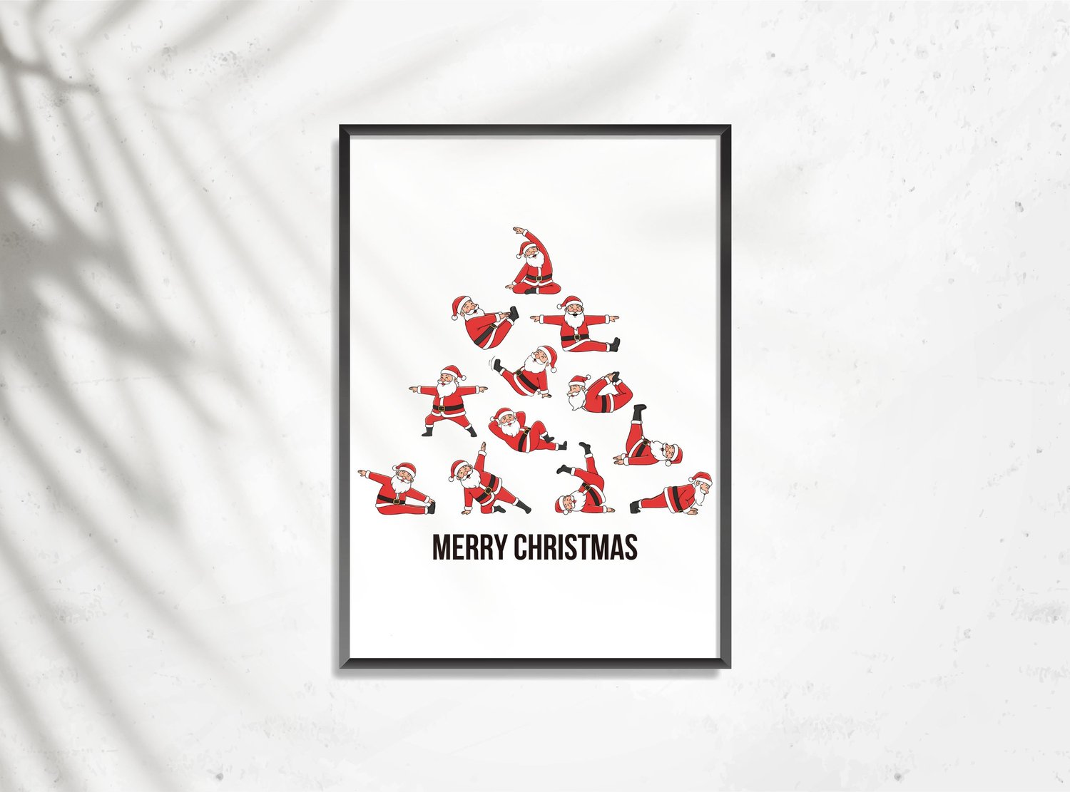 Bring some holiday cheer (and core strength!) into your space with this playful Santa Pilates Poster. Featuring Santa Clauses forming a Christmas tree. This artwork is perfect for Pilates lovers, fitness studios, gyms, or anyone who enjoys a festive laugh.