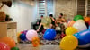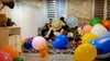I blow to pop a balloon for Kyllan and Krys