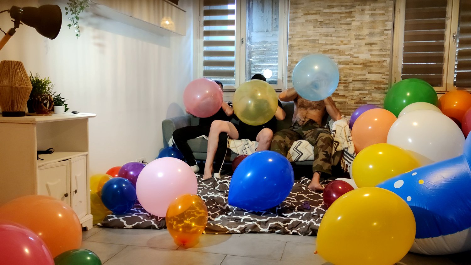 Nelson Kyllan and me blow to pop balloons