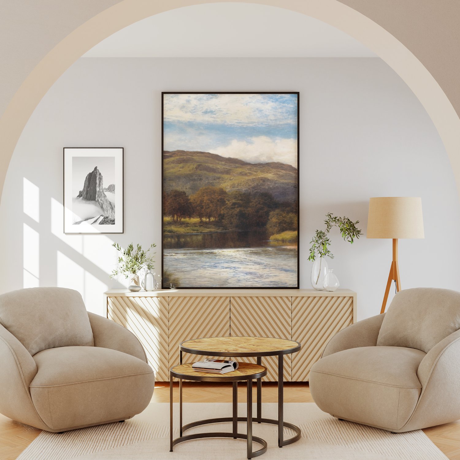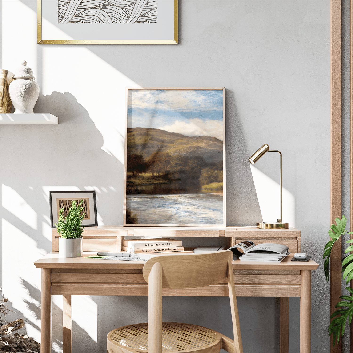 Vintage Landscape, Ancient Lake Scene, Nostalgic Nature, Cool Nature, Rustic natural Landscape, Painting.