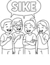 - Fun “SIKE” coloring sheet featuring diverse kids laughing and using the term