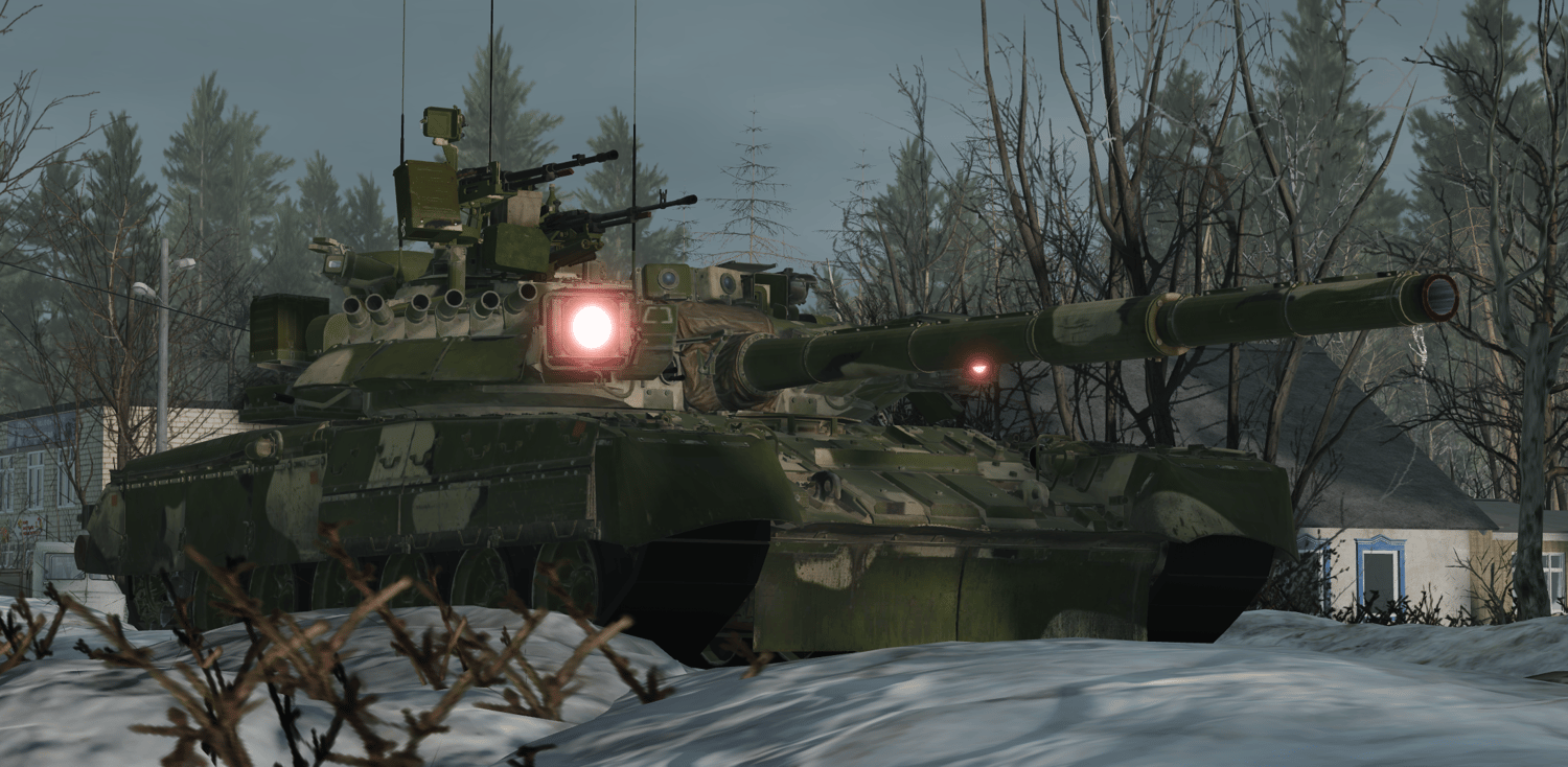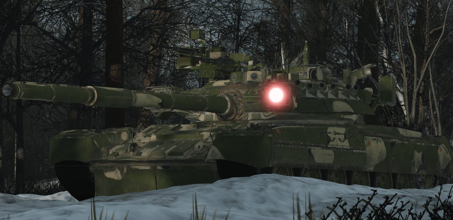 The T-80UK is a command variant of the T-80 main battle tank, designed to coordinate armored units on the battlefield. It retains the T-80’s gas turbine engine for high speed and acceleration, along with its 125mm smoothbore gun and autoloader, but adds advanced communication systems and navigation equipment for command roles. The T-80UK also includes enhanced defensive features like the Shtora-1 active protection system and improved situational awareness tools, allowing commanders to direct operations while remaining protected and mobile in combat.