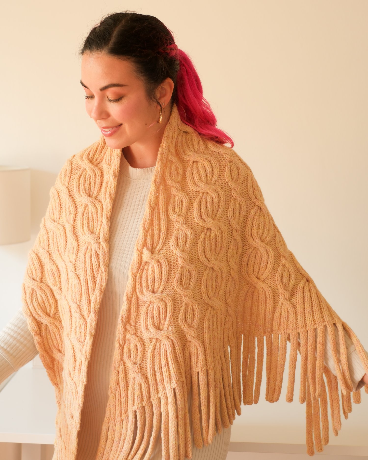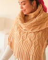 Cozy, soft, and warm — just like a freshly baked milk bun — this shawl is a celebration of comfort knitting. Pillowy cables rise and fold like soft dough, creating rich texture that feels as delicious and indulgent on the needles as it does wrapped around the shoulders.