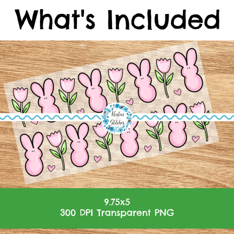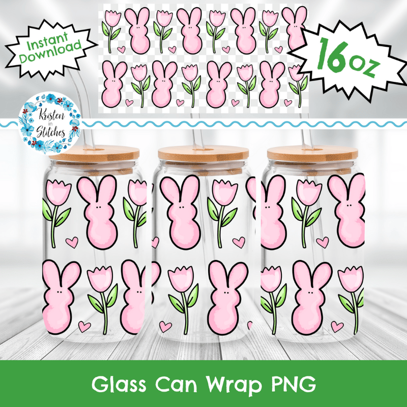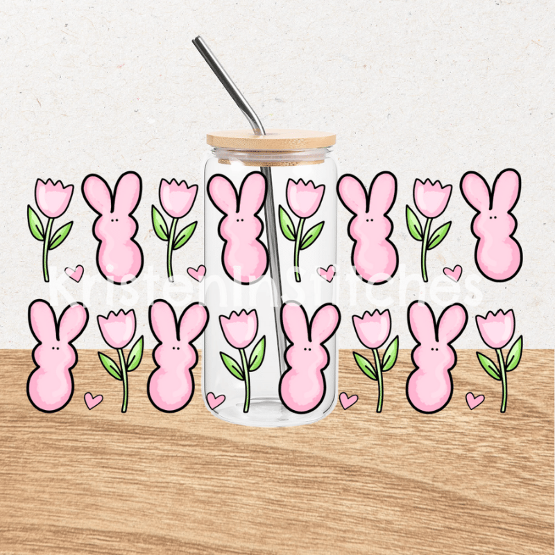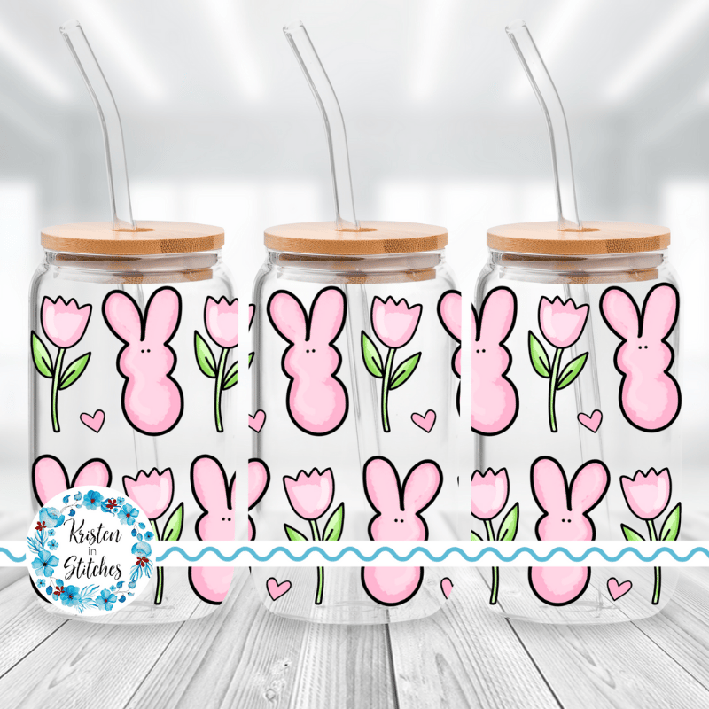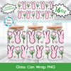 Spring Bunny Glass Can Wrap Transparent PNG, Pink Easter Bunnies Flowers Hearts