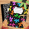 No more boring black and white composition books! This printable cover will make your notebook stand out! Size to fit any notebook up to 8.5x11- just print, cut and stick. Composition book measurements differ from brand to brand- you don't have to worry about sizing when you can cut it to fit perfectly.