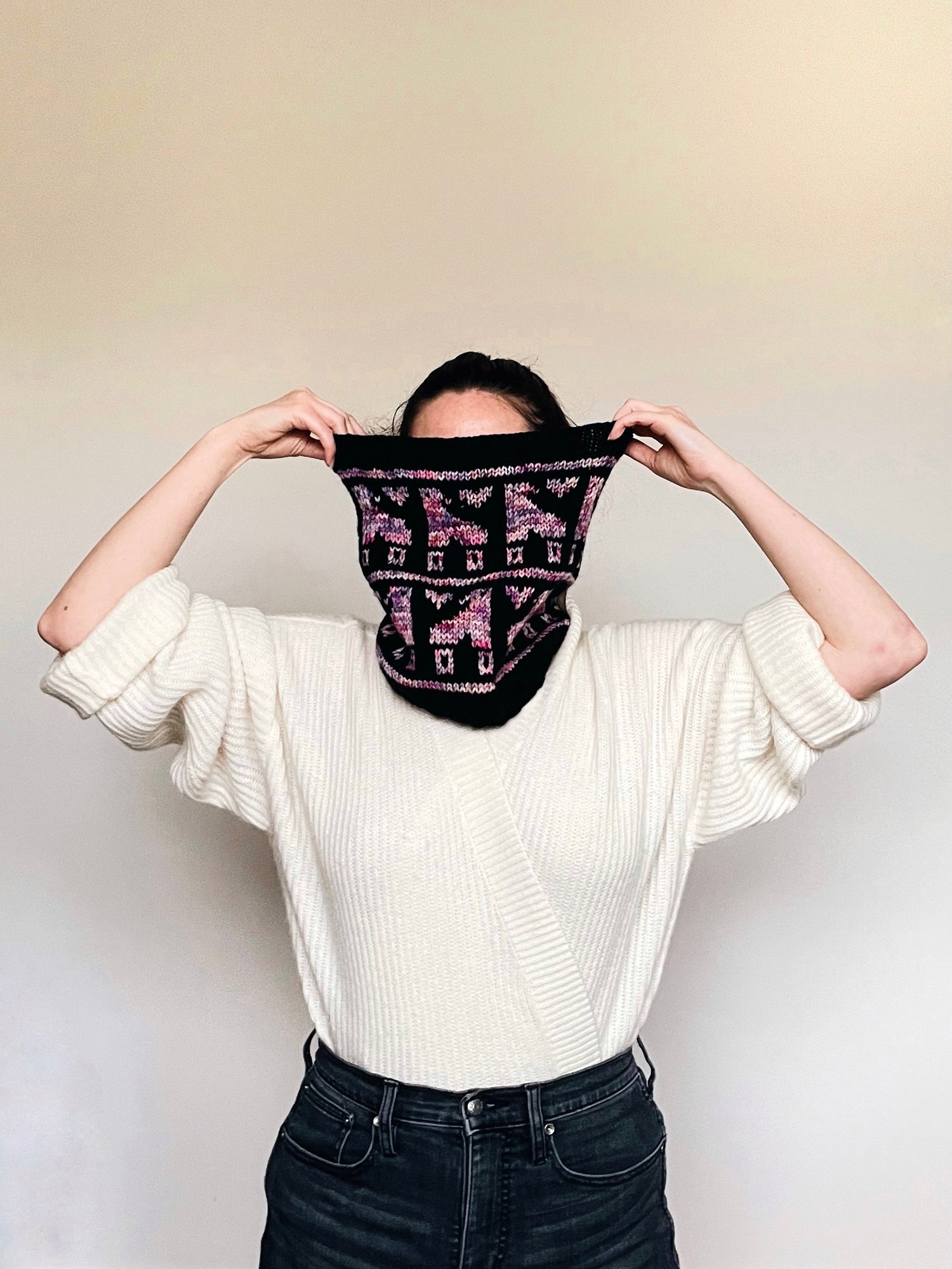 I Heart Skates is a simple colorwork cowl in two colors, suitable for beginner colorwork knitters.