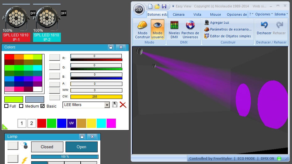 Esta Librería SSL2 está optimizada para trabajar con Magic 3d Easy View. Es decir para ver una representación 3D de las secuencias que estemos realizando con Freestyler, QLC+ o cualquier otro soft que se conecte con Magic 3d.