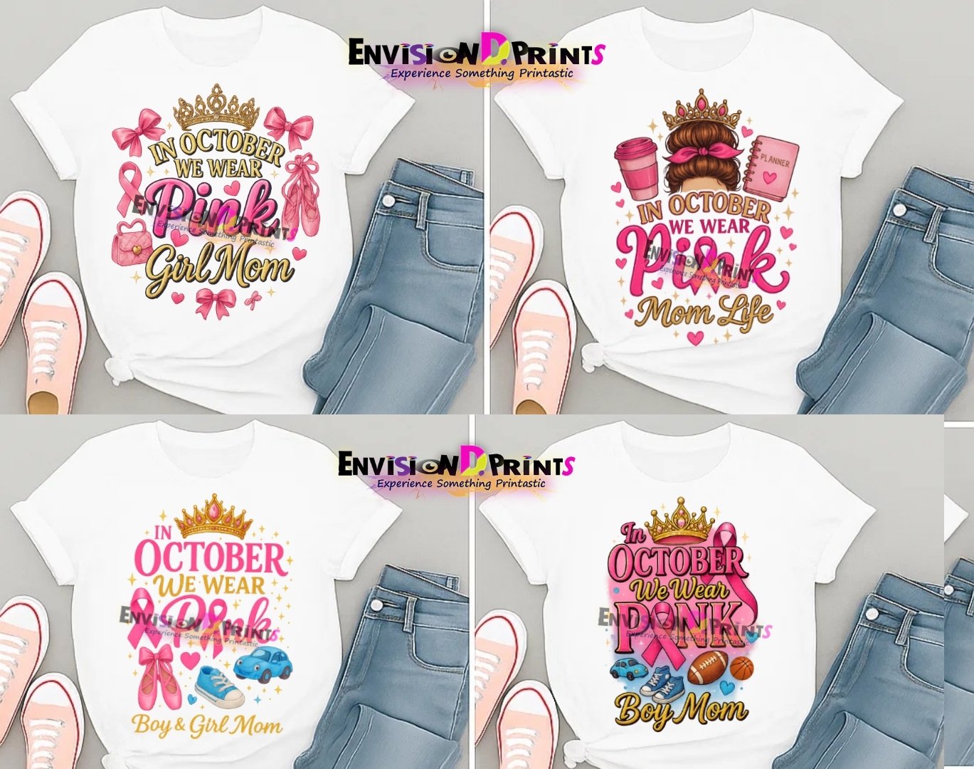 This "In October We Wear Pink - Mom Life Edition" PNG is perfect for t-shirts, hoodies, tote bags, and more β made especially for Boy Moms, Girl Moms, and proud moms of both! ππ