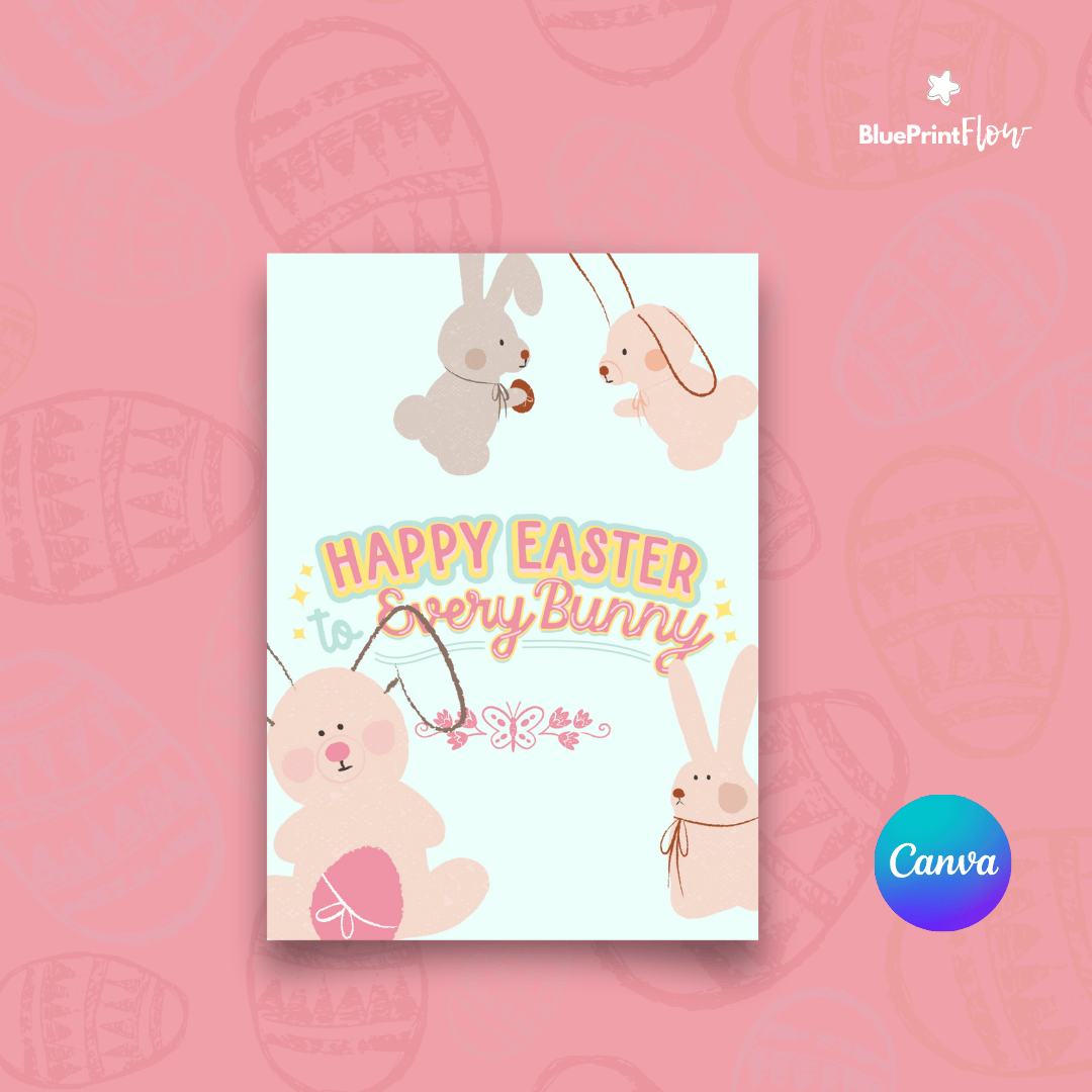 [FREE] Cute Happy Easter to Every Bunny Kids Card Celebration Canva Template Design