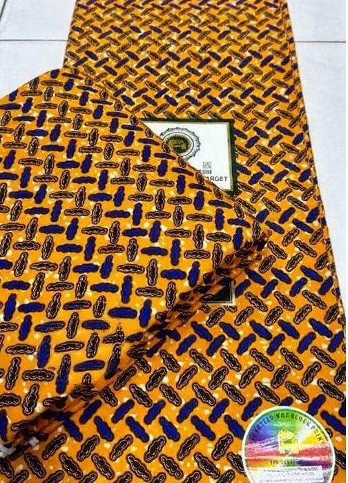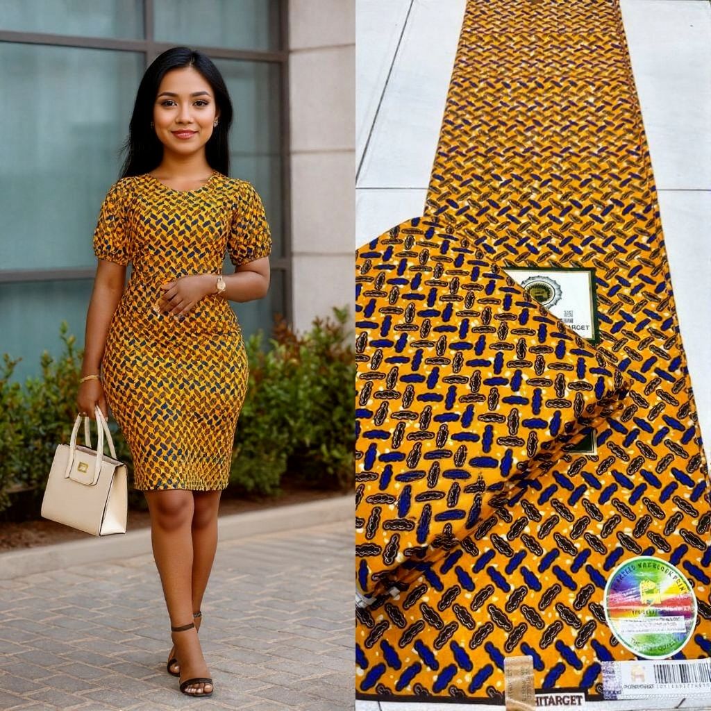 The Golden Radiance Wax Print is a celebration of light, joy, and vitality. Its vibrant yellow base, enriched with bold contrasting motifs, symbolizes happiness, prosperity, and confidence. Perfect for making a statement, this fabric transforms into outfits that shine with cultural elegance and contemporary flair.