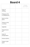 A category game for all! Engage your mind and spark conversations with our specially crafted game, tailored for seniors. With gentle prompts and familiar categories, it's designed to stimulate cognitive skills, memory recall, and encourage social interaction. Whether played one-on-one or in groups, it's a delightful way to exercise the brain while enjoying meaningful connections. Rediscover the joy of communication and laughter with every round! Includes 10 unique boards! Recommend printing 2-sided for one game per paper.