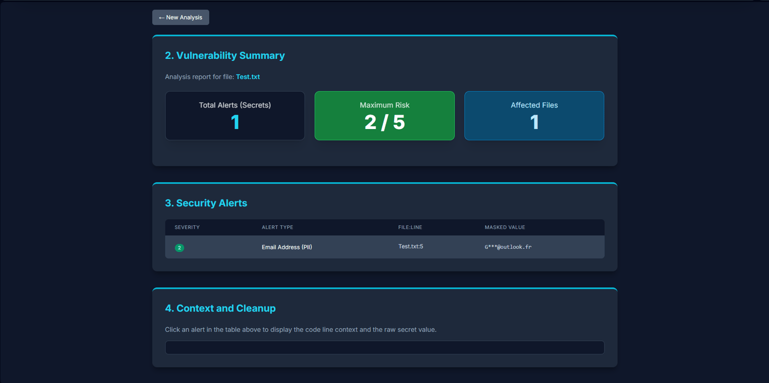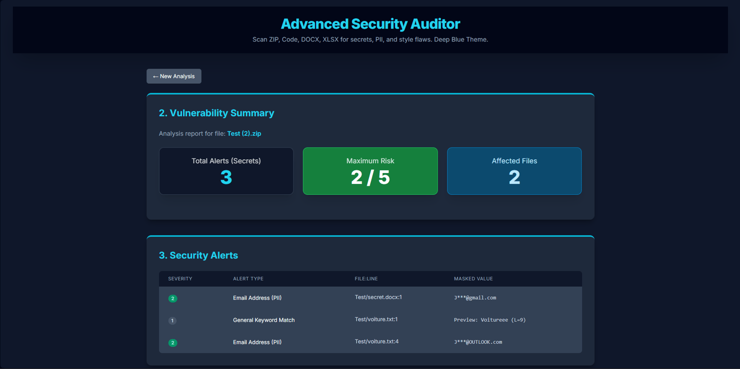 - Source code capable of analyzing files to identify terms resembling passwords or email addresses.