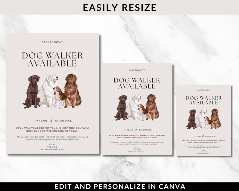 Customizable Dog Walking Flyer and Business Card, Bundle for Dog Walkers, Pet Sitters, Pet Care Business, Editable Canva