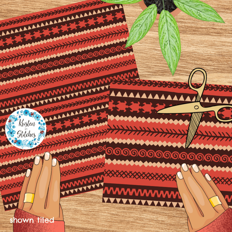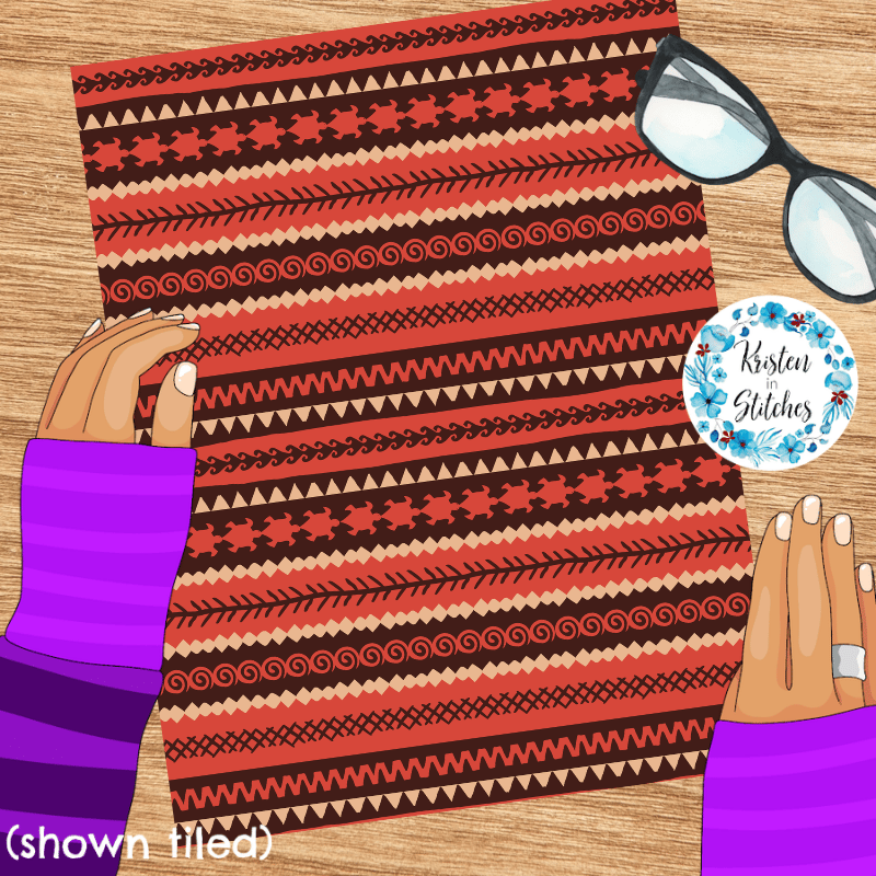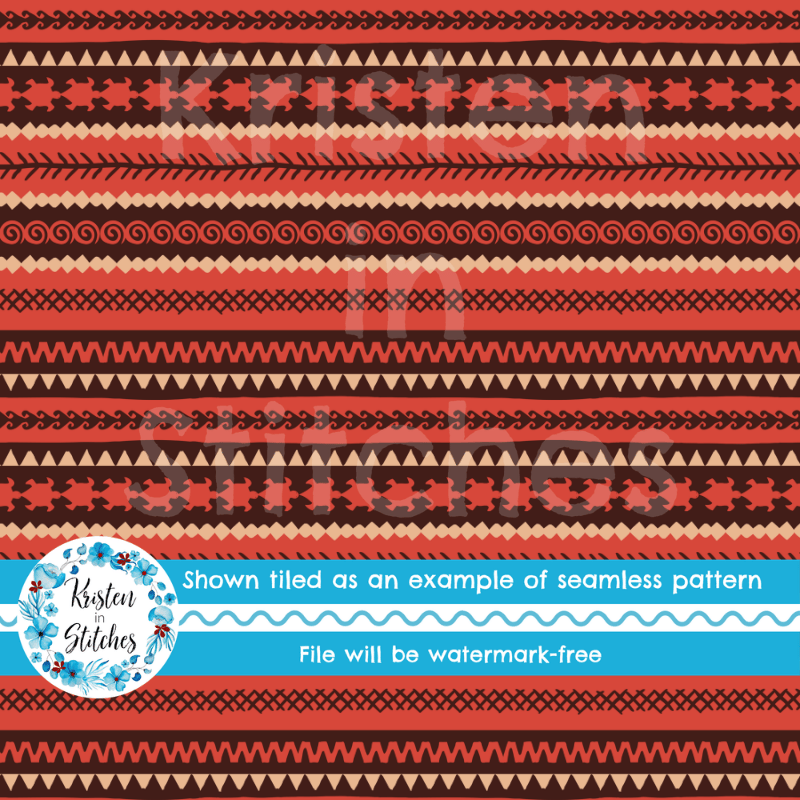 Island Girl Tribal Stripes Seamless Pattern, Coral and Brown