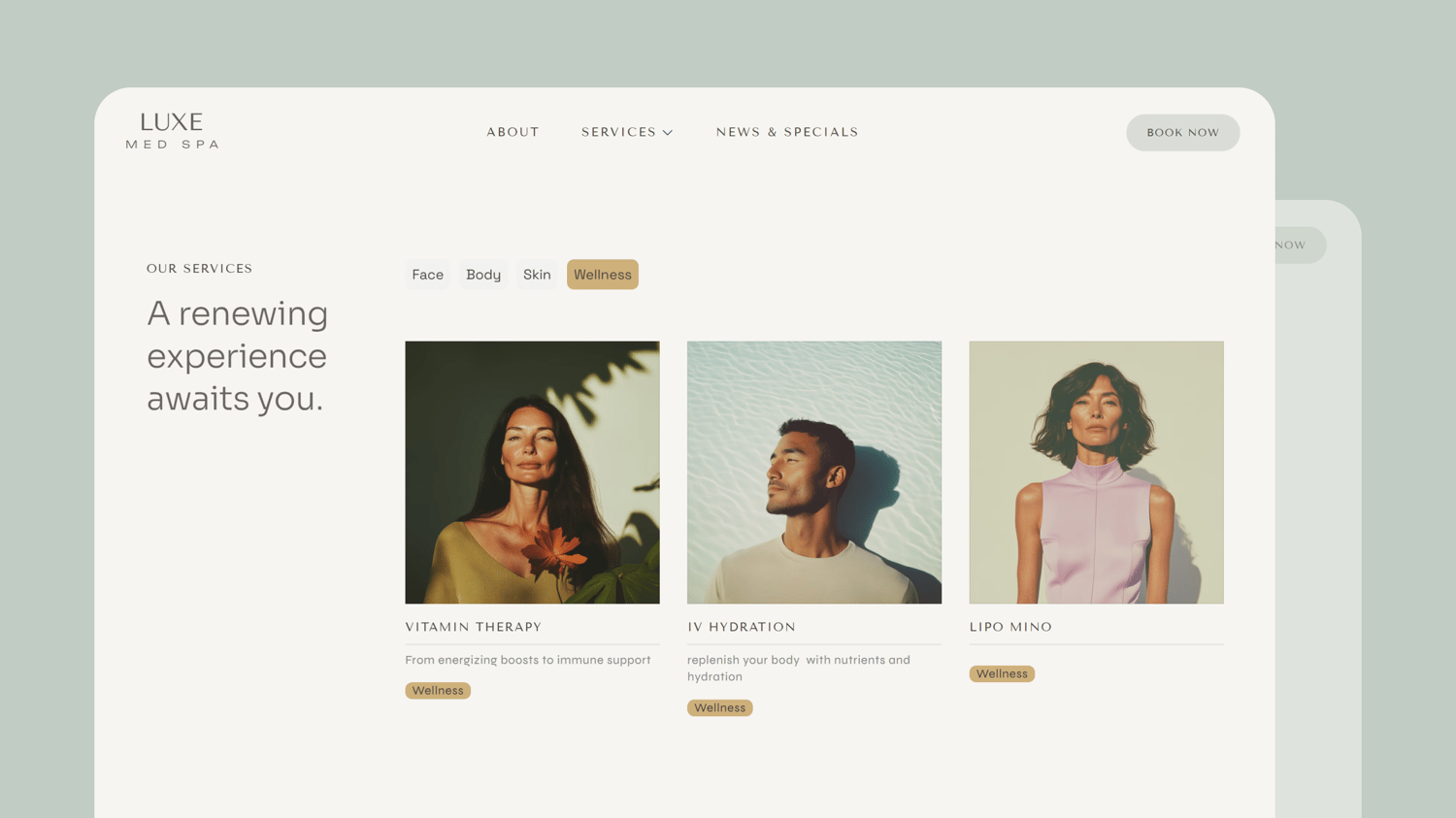 A bespoke template created specifically for the Medical Spa industry. With an elegant CMS solution, this template makes content creation easy and simple. A marketing and content strategy is baked right in, giving you an advantage as soon as you launch.