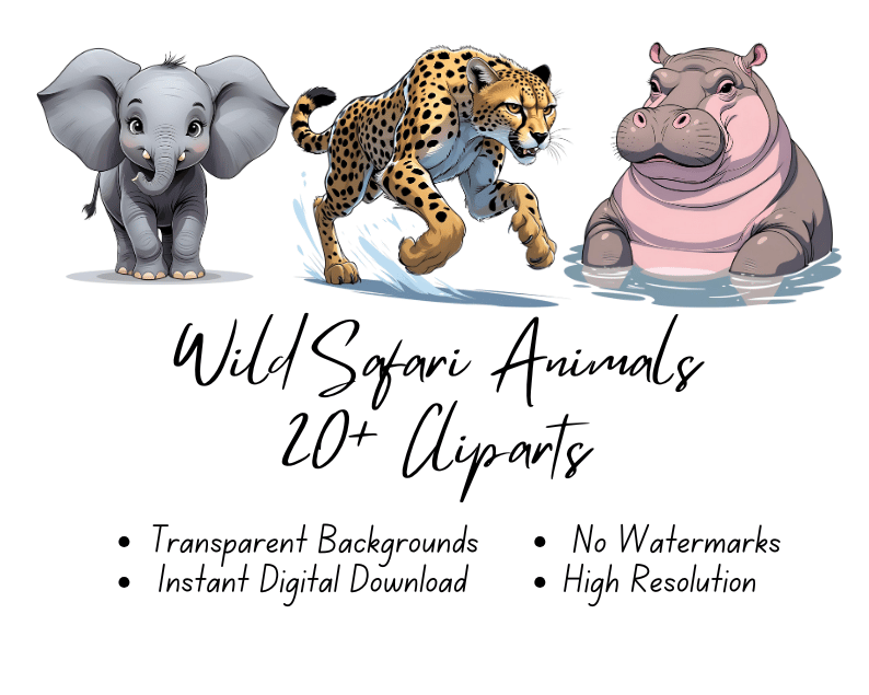 Wild Safari Animals 20+ Cliparts | Instant Download | High Resolution | Digital Format
