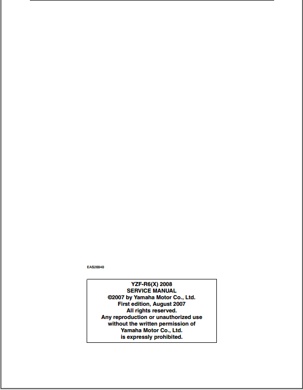 2008 Yamaha YZF-R6 Service Manual Part No. 13S-28197-E0