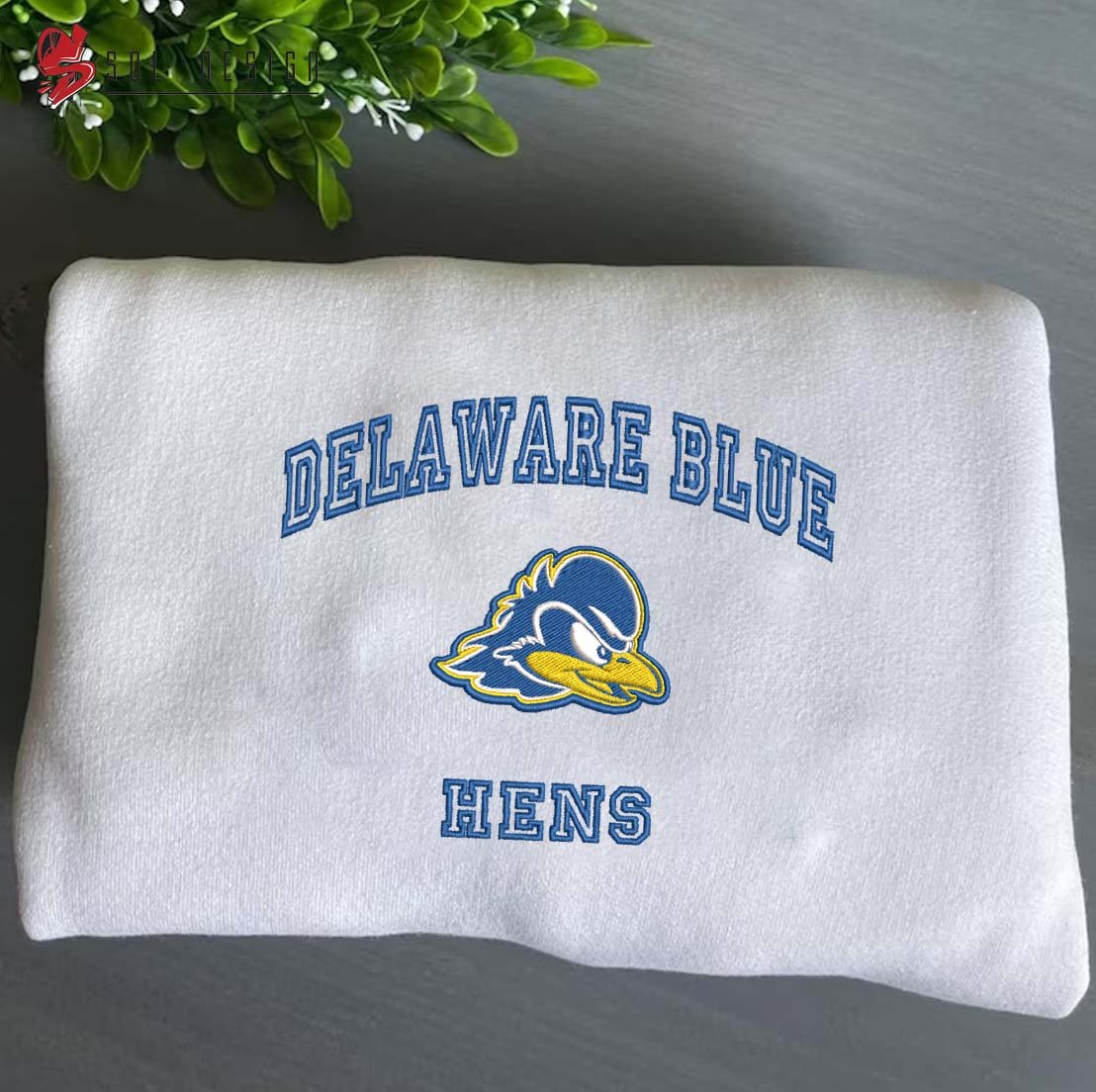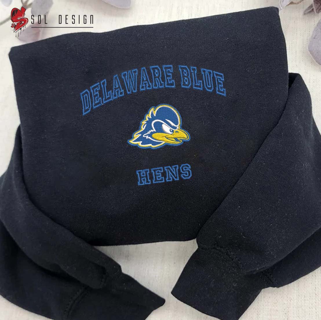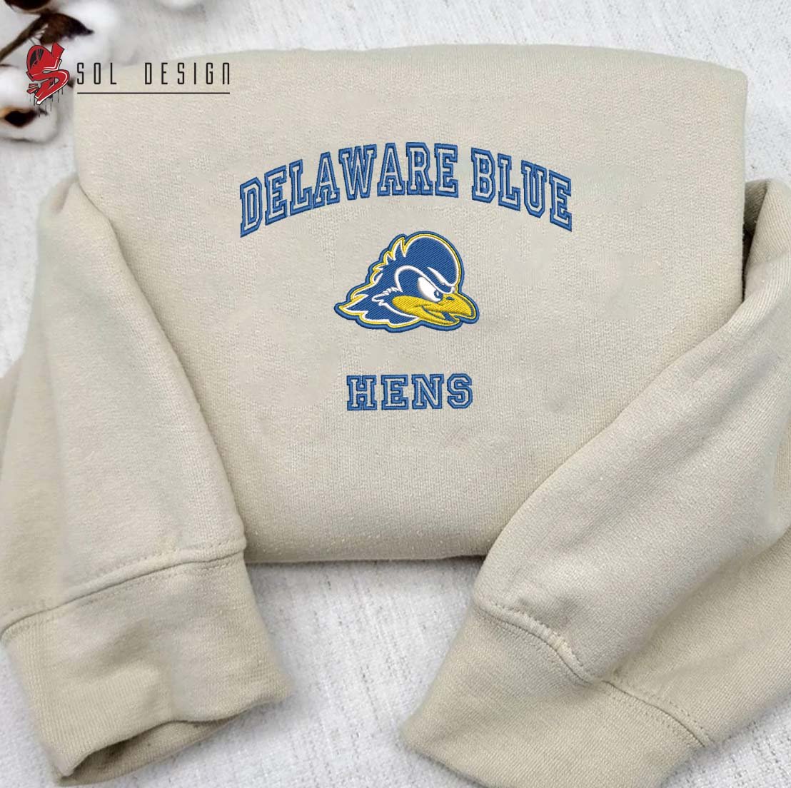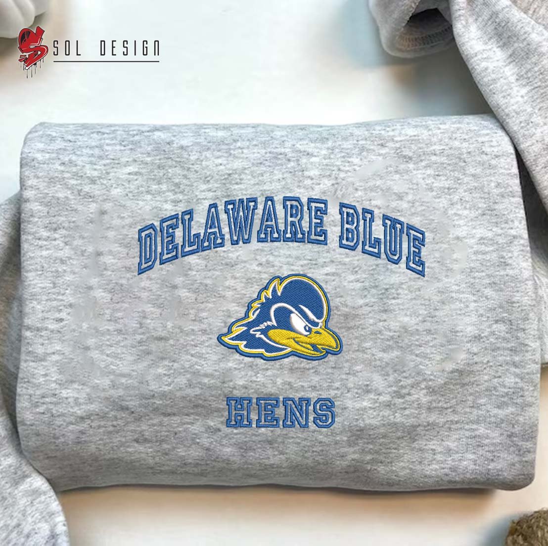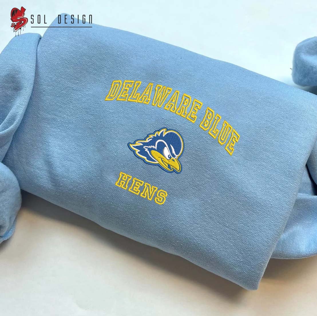 Delaware Blue Hens College Football Team Embroidered Crewneck, Delaware Blue Football Embroidered Sweatshirt, NCAA Delaware Blue Hens Team Sweatshirt, Game Day Embroidered Hoodie, T-shirt
