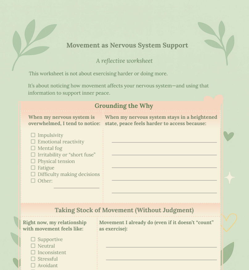 This gentle worksheet invites you to explore how movement affects your body and emotional state—without pressure, performance, or rigid rules.