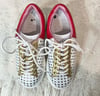 Hollie Watman “Star gazer” white, red and gold leather sneakers with star cut outs.