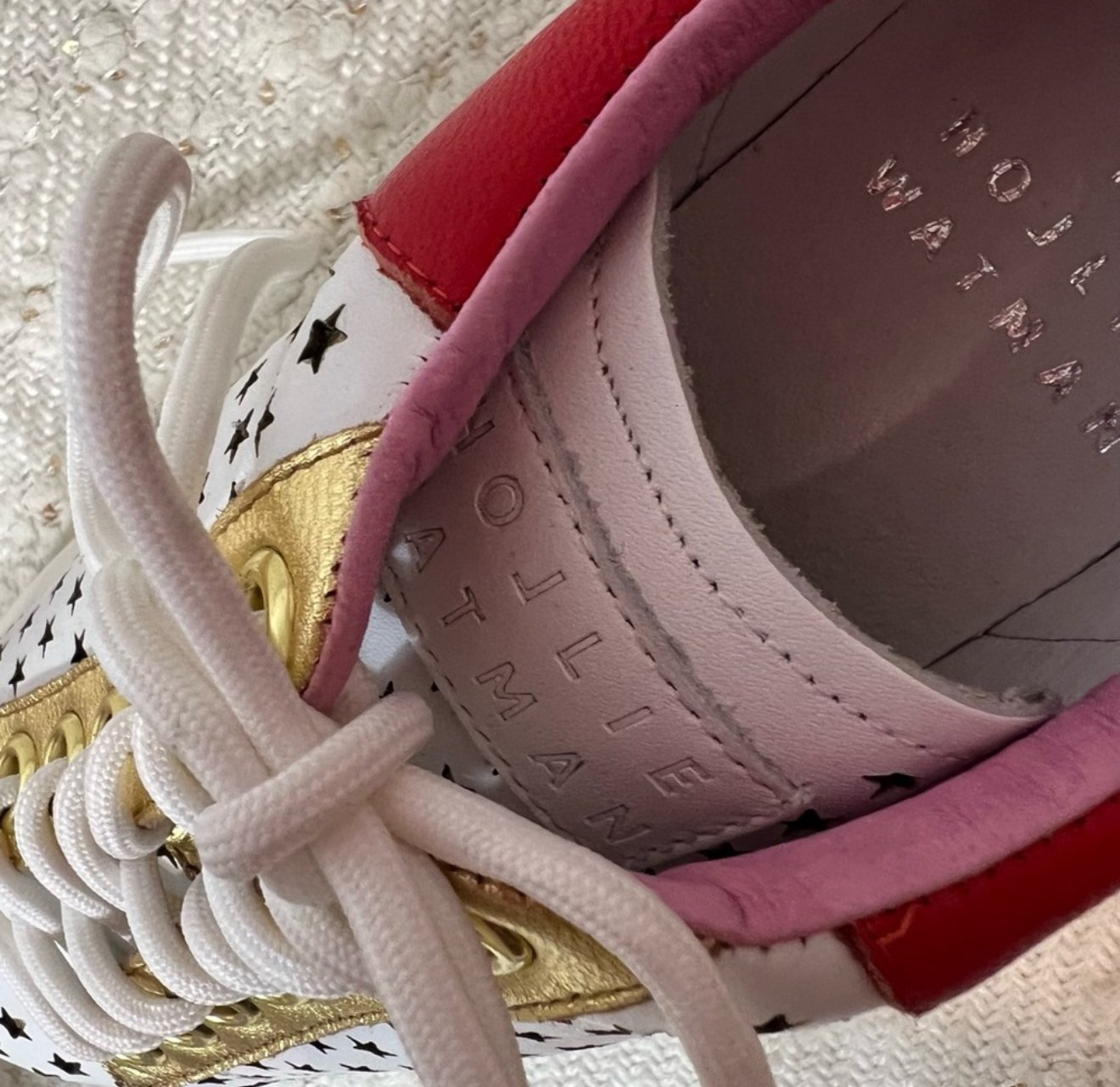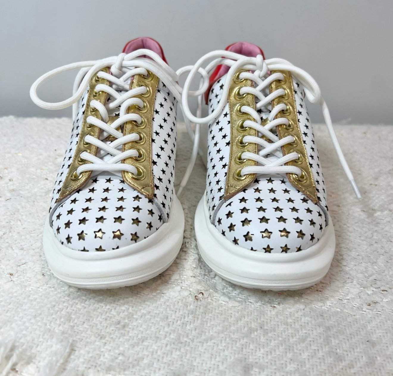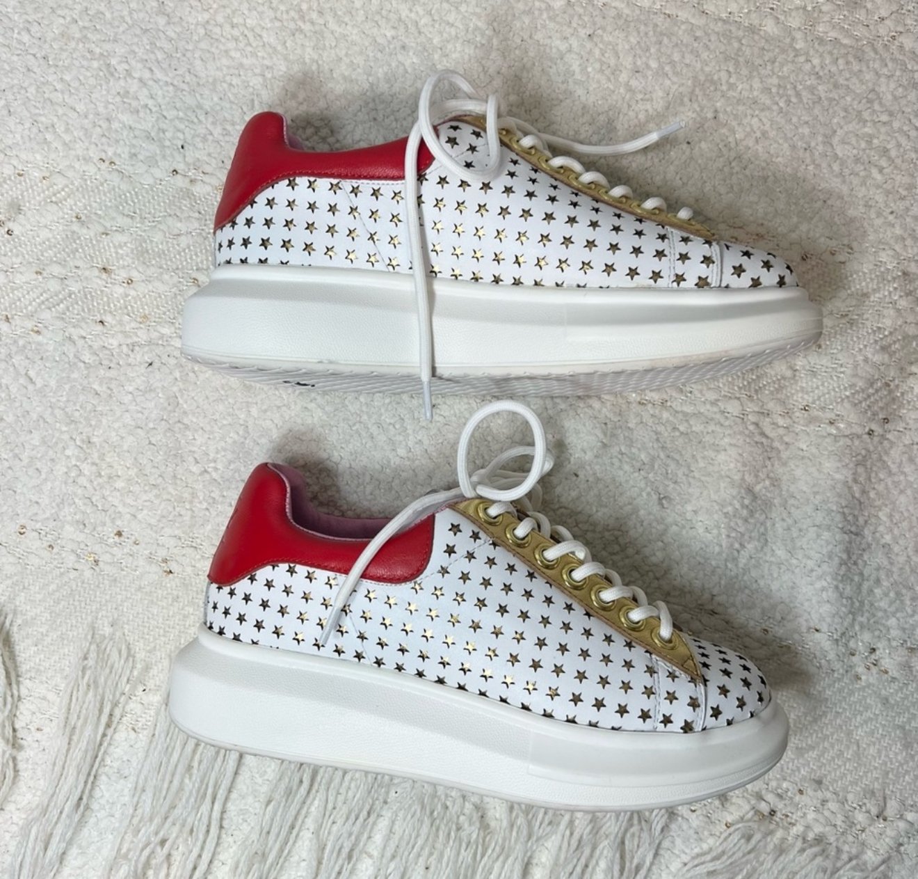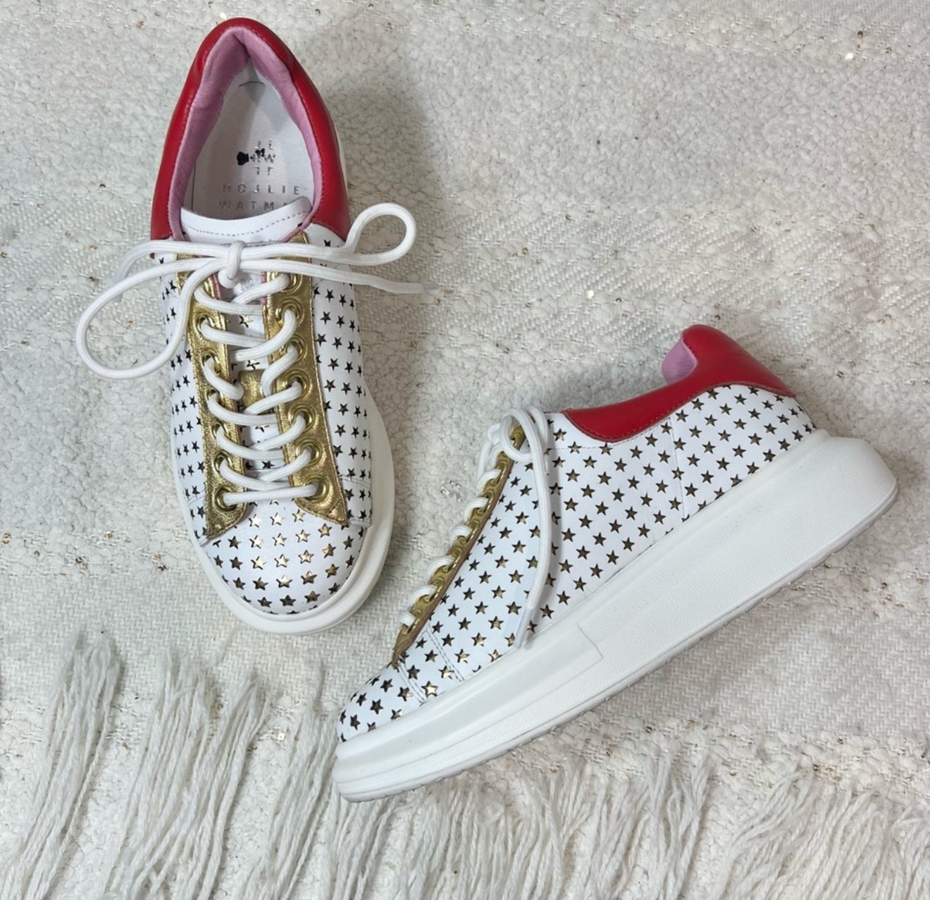 Hollie Watman ‘Star Gazer’ White/Red/Gold Leather Sneakers - size 6 1/2