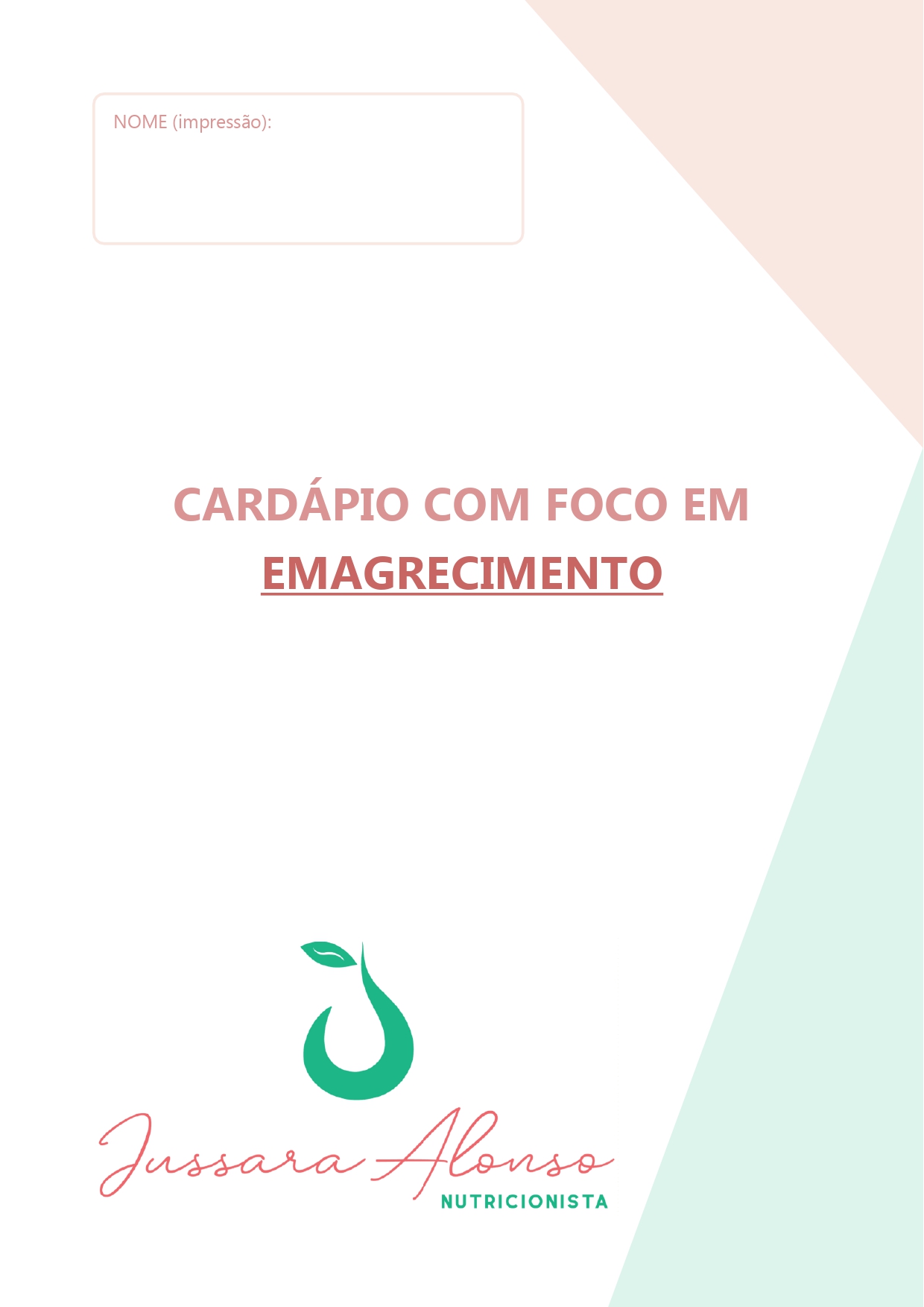 CARDÁPIO NUTRICIONAL - EMAGRECIMENTO