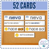 This set of 50 printable weather posters / cards contains 25 unique Spanish weather vocabulary phrases. These Spanish weather posters / cards are 2.5 x 11", perfect for Calendar / Weather Talk, with a large, legible font. These Spanish weather posters can be printed smaller for use with a Weather Word Wall. This set of weather vocabulary cards contains hace & está expressions as well a full color & more printer-friendly version.
