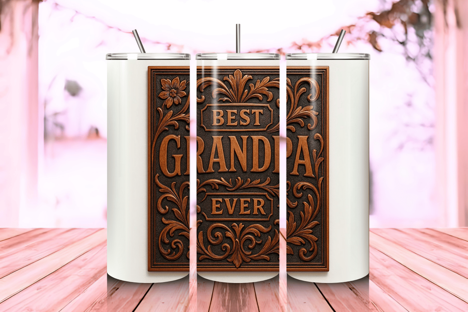 3D Carved Leather Best Grandpa Ever Tumbler Wrap PNG – 20oz Skinny Sublimation Design with Embossed Leather Effect & Bold Typography – Perfect Gift for Grandfathers – 300 DPI Instant Digital Download