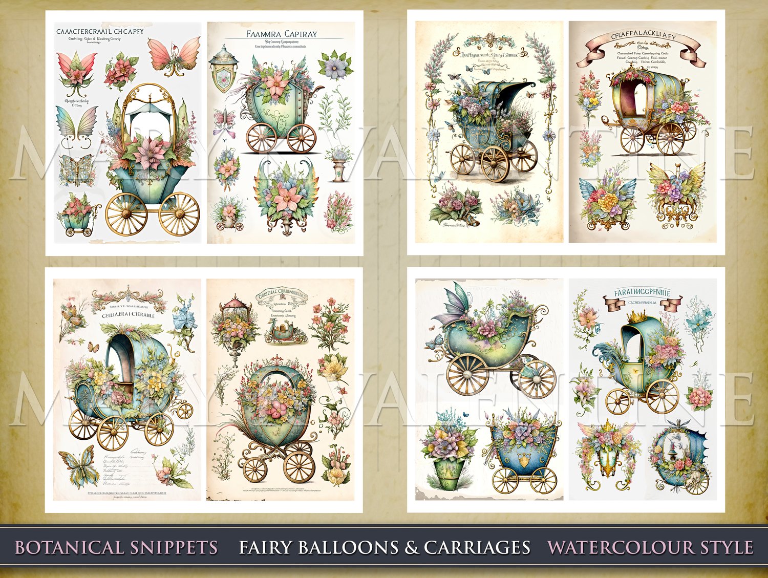 Watercolour Fairy Balloons and Carriages Junk Journal Digital Papers