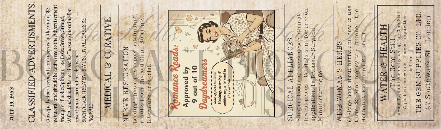 - Medical Ads Column: Promoting literary wellness with βRomance Reads: Approved by 9 out of 10 Daydreamers.β