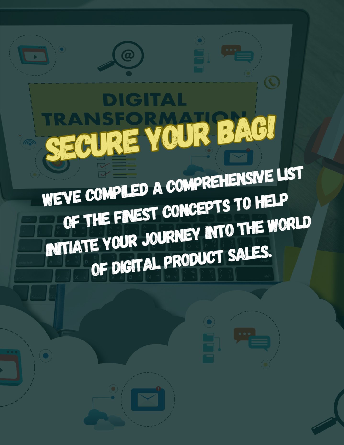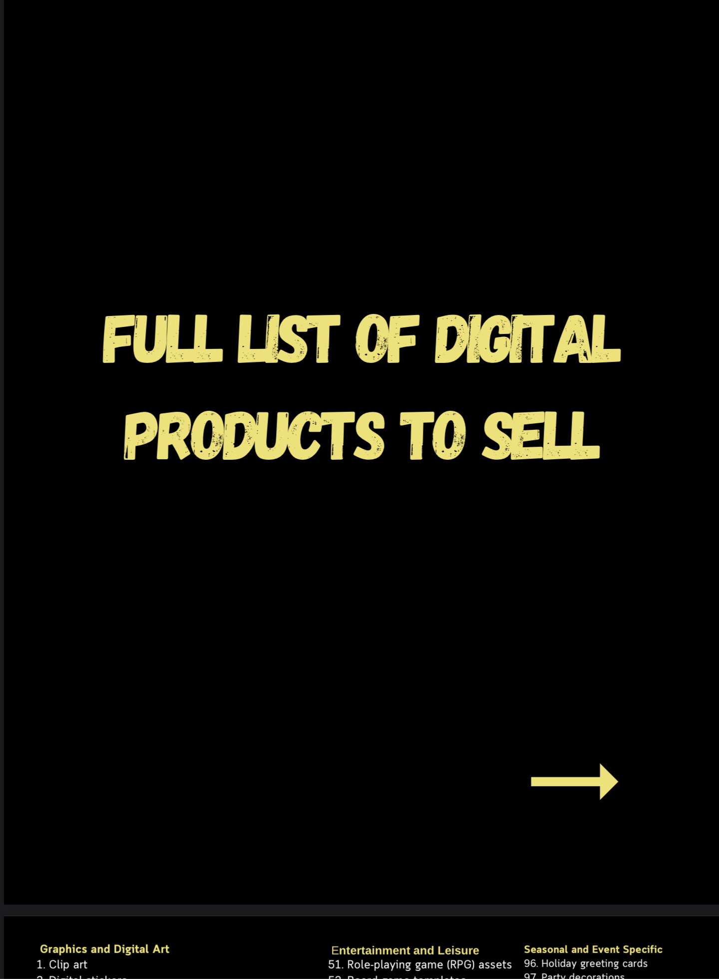 INCLUDES: Full List of Digital Products to Sell, Top 100 digital product ideas, Resource List For Digital Sellers, How to manage and scale your products, Checklist For Starting An Etsy Shop For Digital Products and MORE!