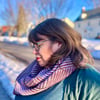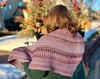 Montrose’s quest for stripes was only aided by a pair of stripe-friendly yarns. Feederbrook Farm’s Entropy DK is a springy, BFL two-ply yarn that adds gentle shifts from color to color. Brooklyn Tweed’s Arbor provided a neutral canvas with the perfect toothy texture. Together, they make a shawl that’s lofty, plush, and stripey as can be.