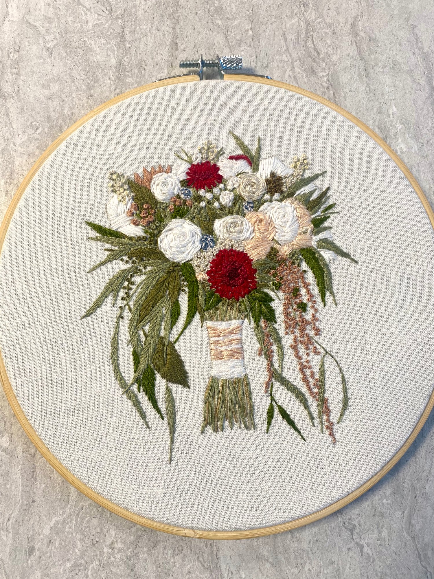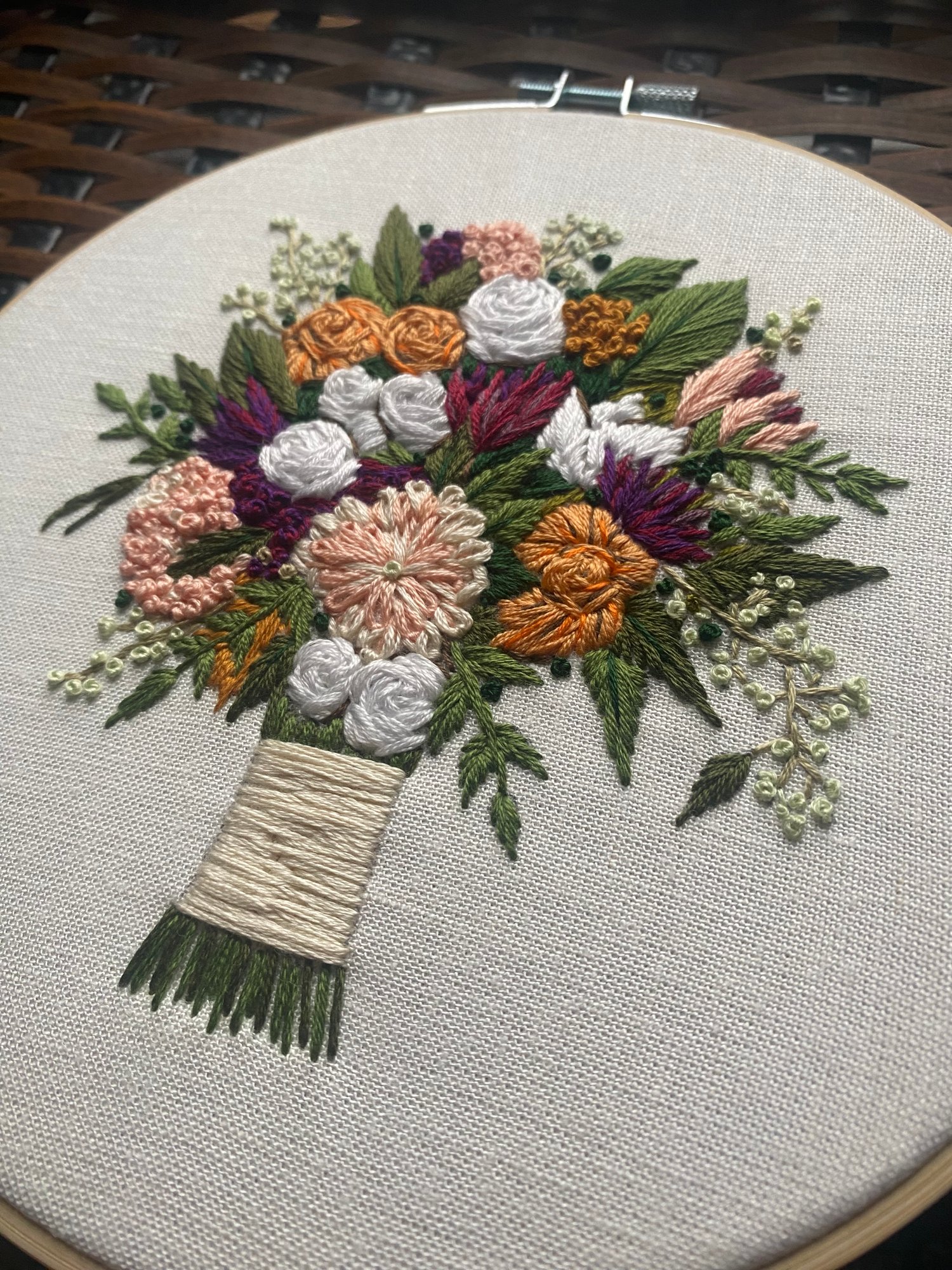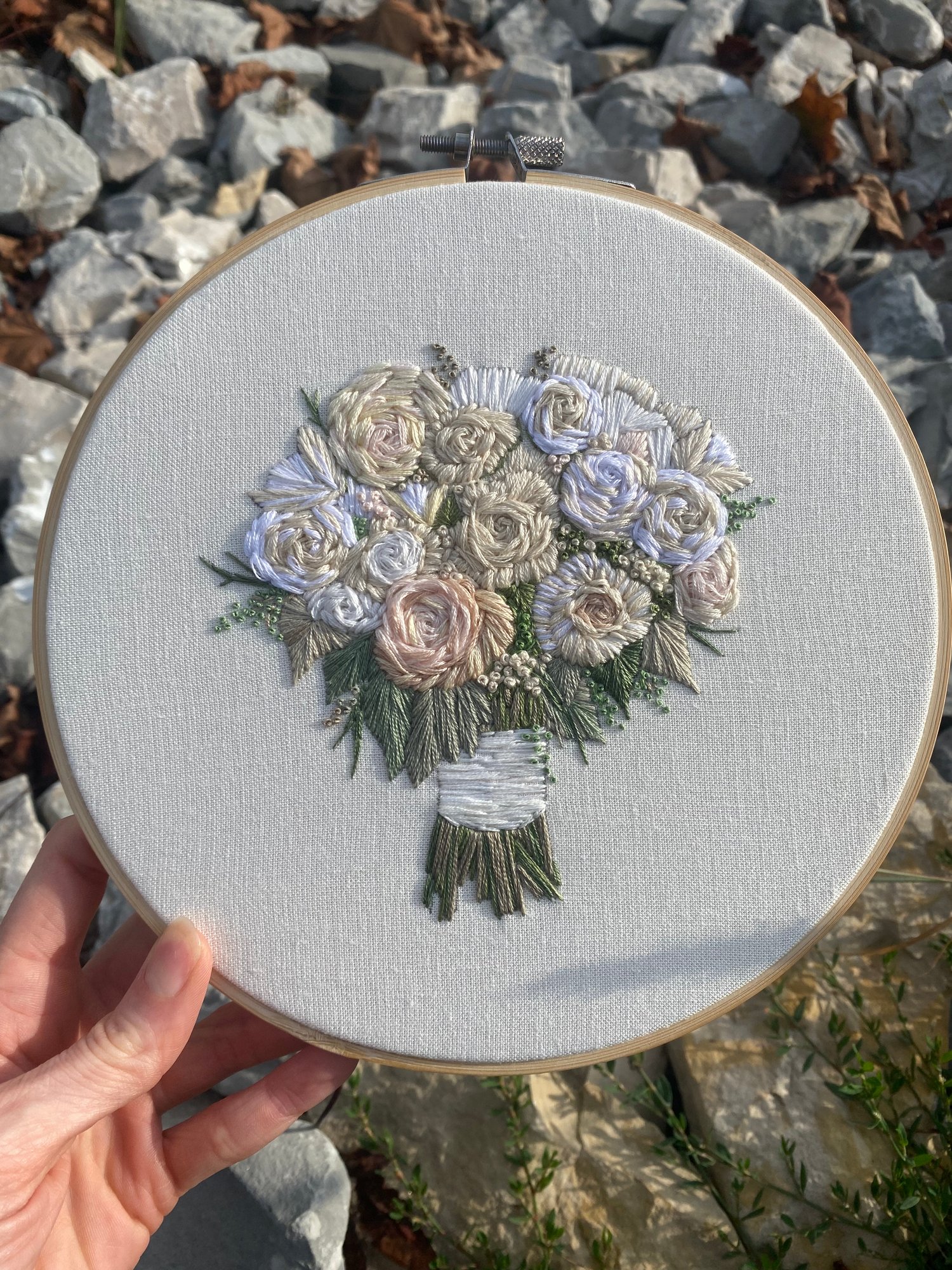 Custom Hand Embroidered Wedding Bouquet - 8” Embroidery Hoop