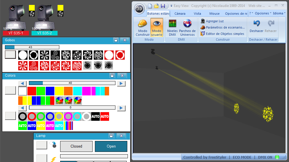 Esta Librería SSL2 está optimizada para trabajar con Magic 3d Easy View. Es decir para ver una representación 3D de las secuencias que estemos realizando con Freestyler, QLC+ o cualquier otro soft que se conecte con Magic 3d.